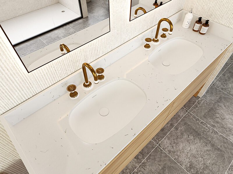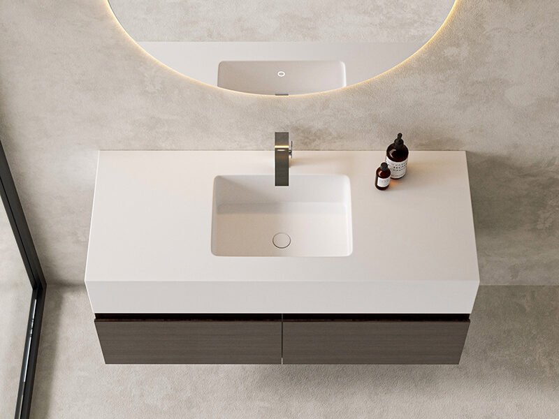 Solid surface basins are non-porous, which makes them highly resistant to stains, bacteria, and moisture. They are warm to the touch compared to ceramic or stone, making them more comfortable in cold climates. These properties make solid surfaces the top choice for modern hospitality projects, healthcare facilities, and premium residential bathrooms where hygiene and durability are non-negotiable.