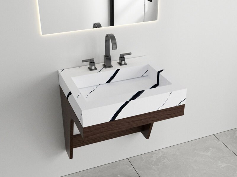 Quartz stone basins are highly durable and scratch-resistant, made from natural quartz bound with resin. They provide a premium, consistent appearance and perform well in high-traffic commercial and luxury residential bathrooms. Their non-porous surface makes them resistant to bacteria and moisture, ensuring better hygiene over time. They also retain their color and finish for years, even with heavy daily use.