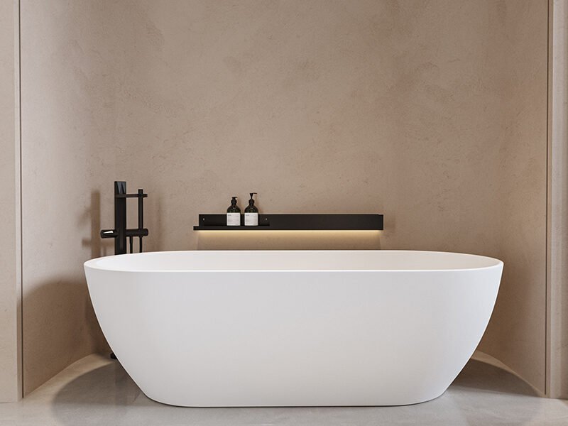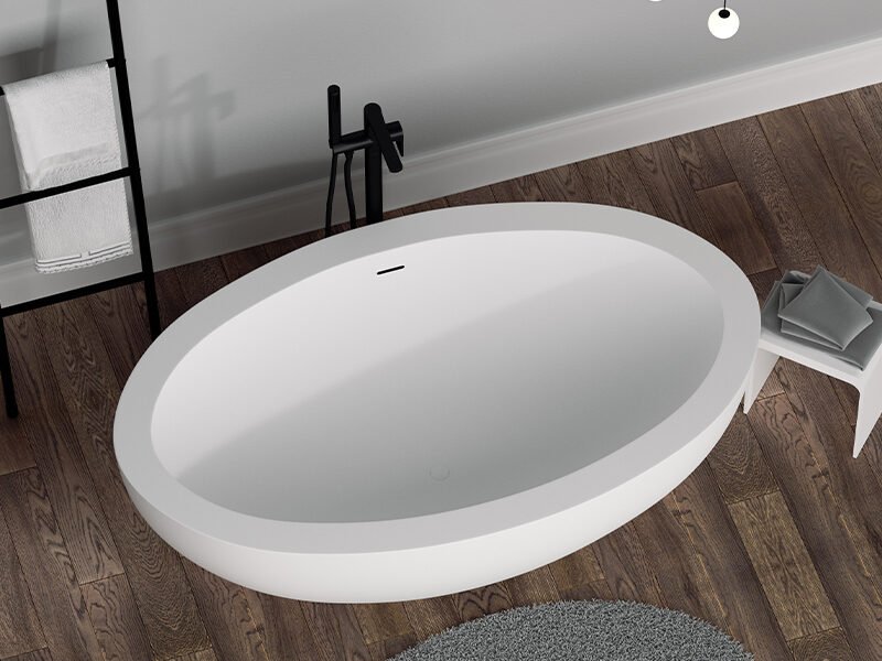 Solid surface bathtubs are heavy enough to feel premium, yet manageable with 2–4 installers, making them more site-friendly than stone tubs.