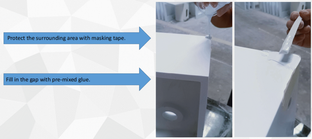 Wipe clean with a microfiber cloth. Under soft light, the repaired section should appear uniform, smooth, and free of visible edges — just like a new product.