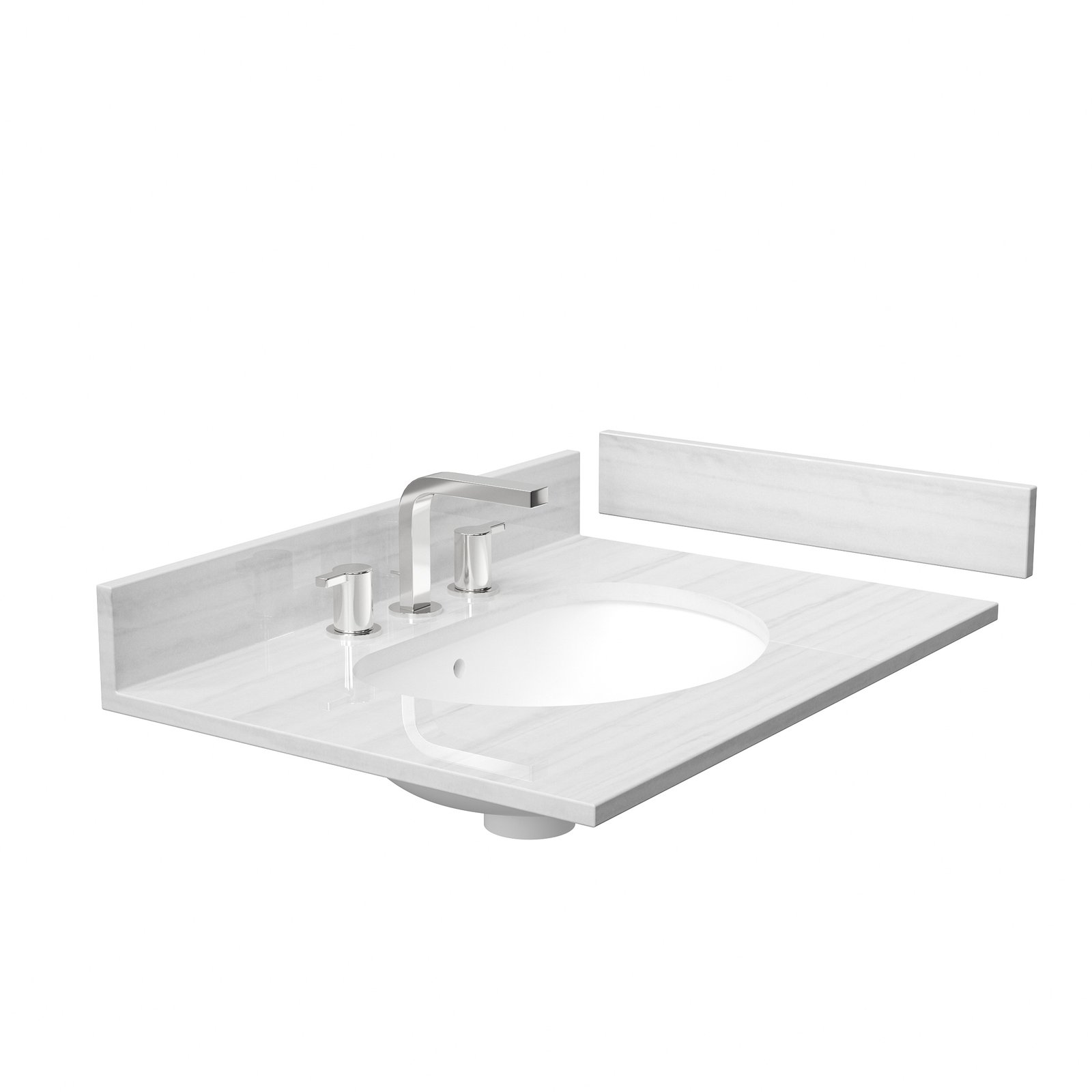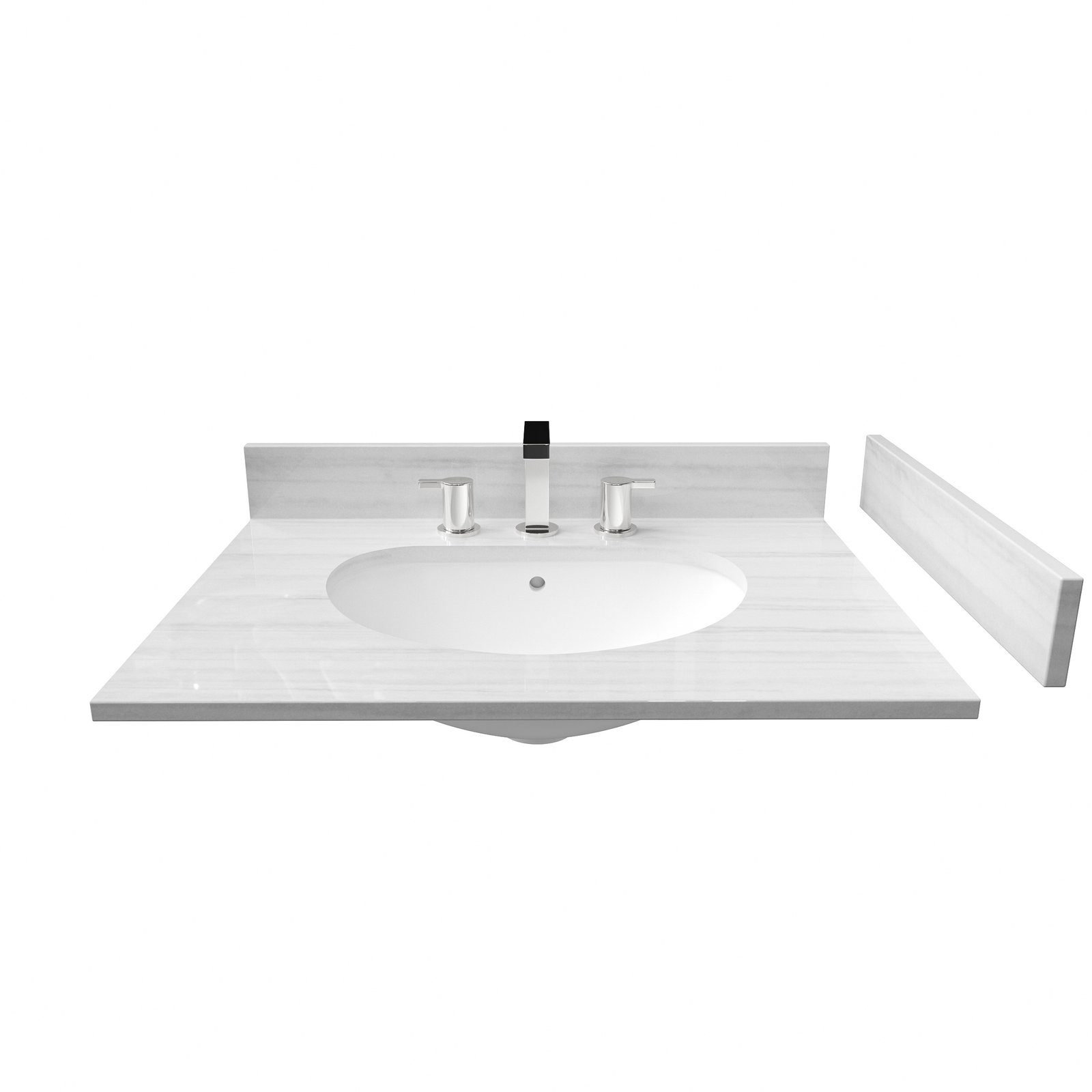 30″ Light Linear Marble Style Solid Surface Bathroom Vanity Countertop with Undermount Oval Sink, Includes Backsplash & Sidesplash | KKR