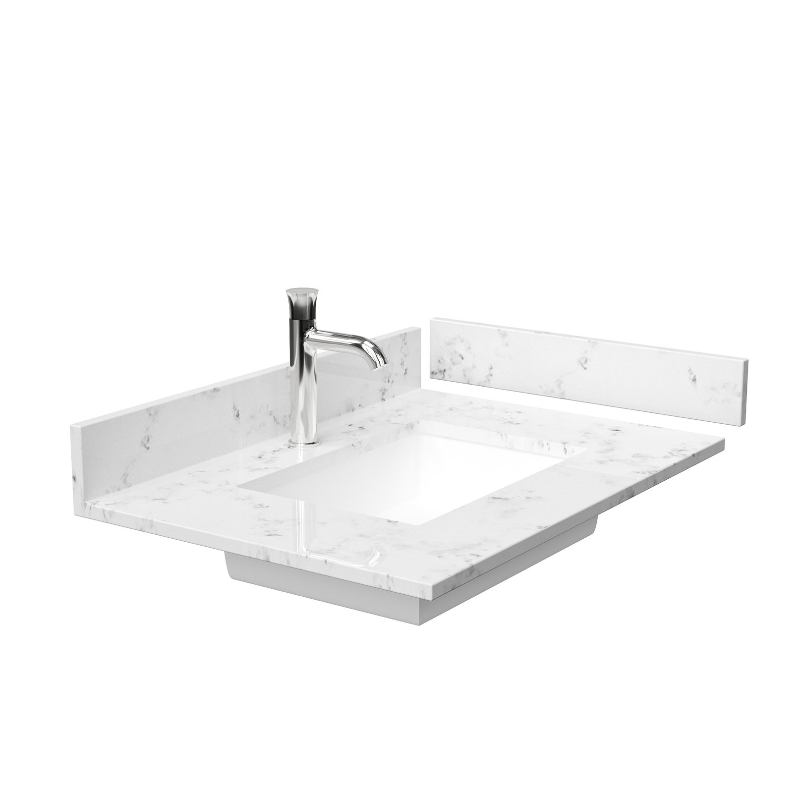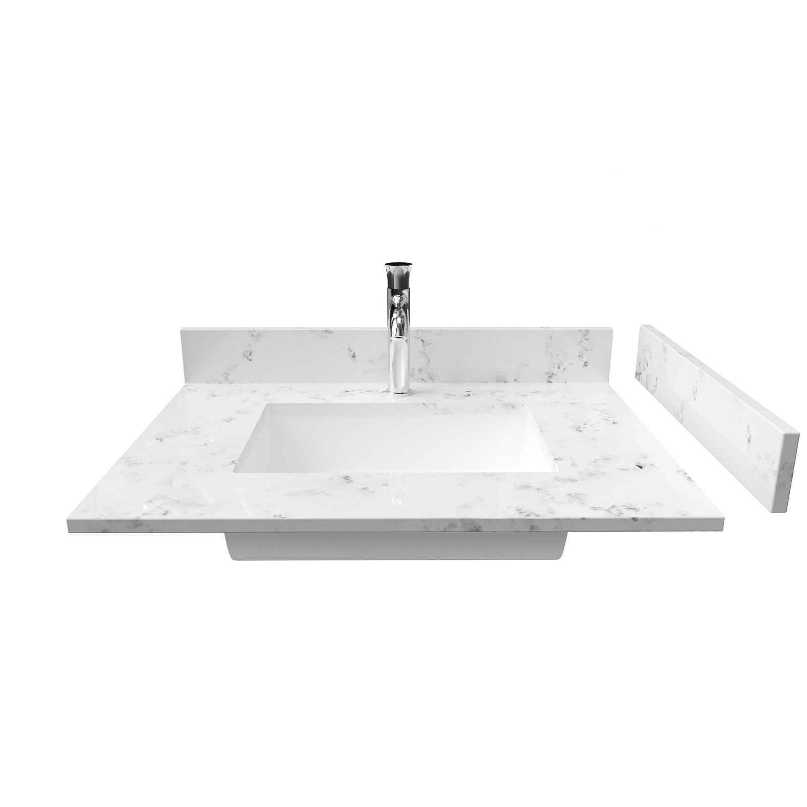 30″ Modern White Marble Look Solid Surface Bathroom Countertop with Rectangular Undermount Sink, Includes Backsplash & Sidesplash | KKR