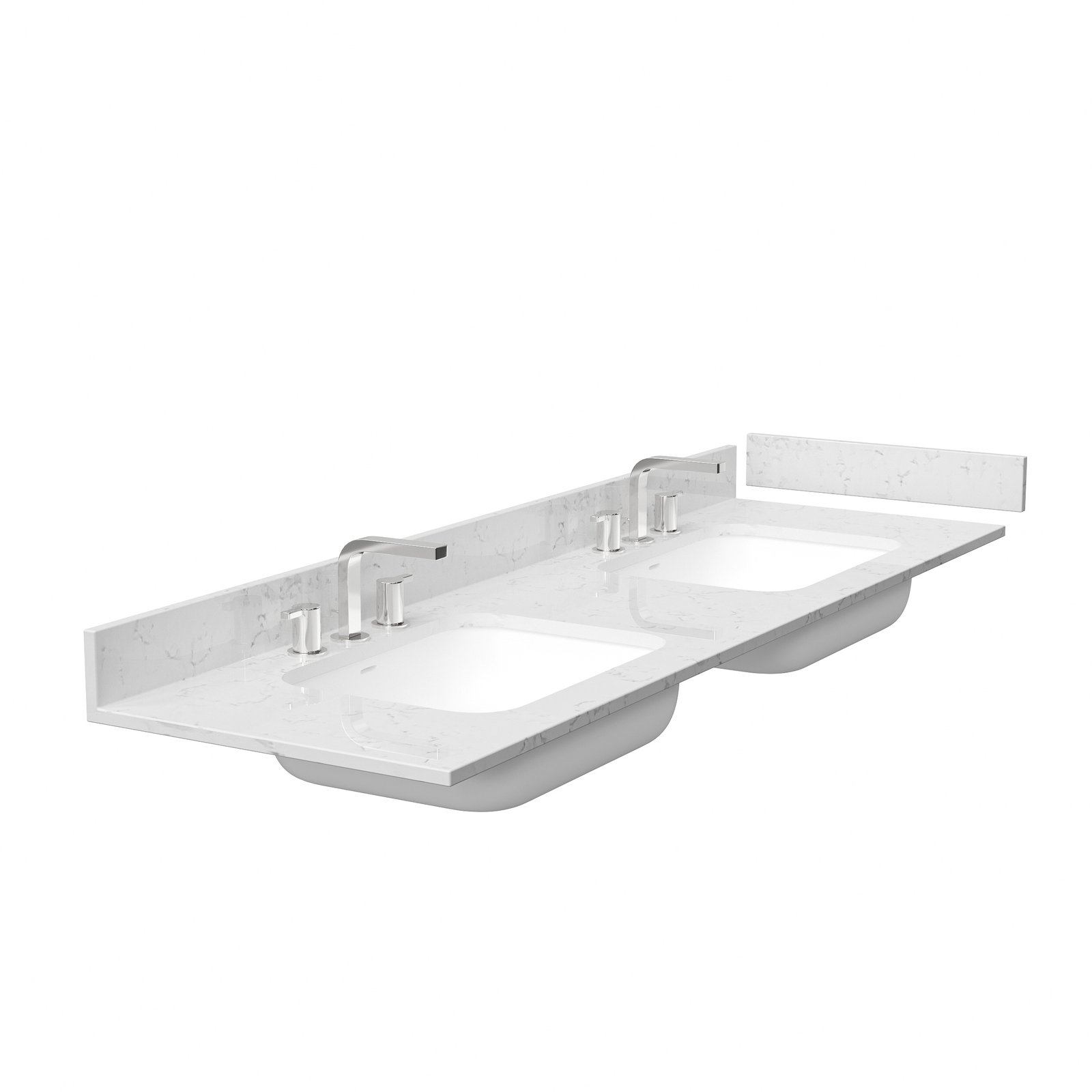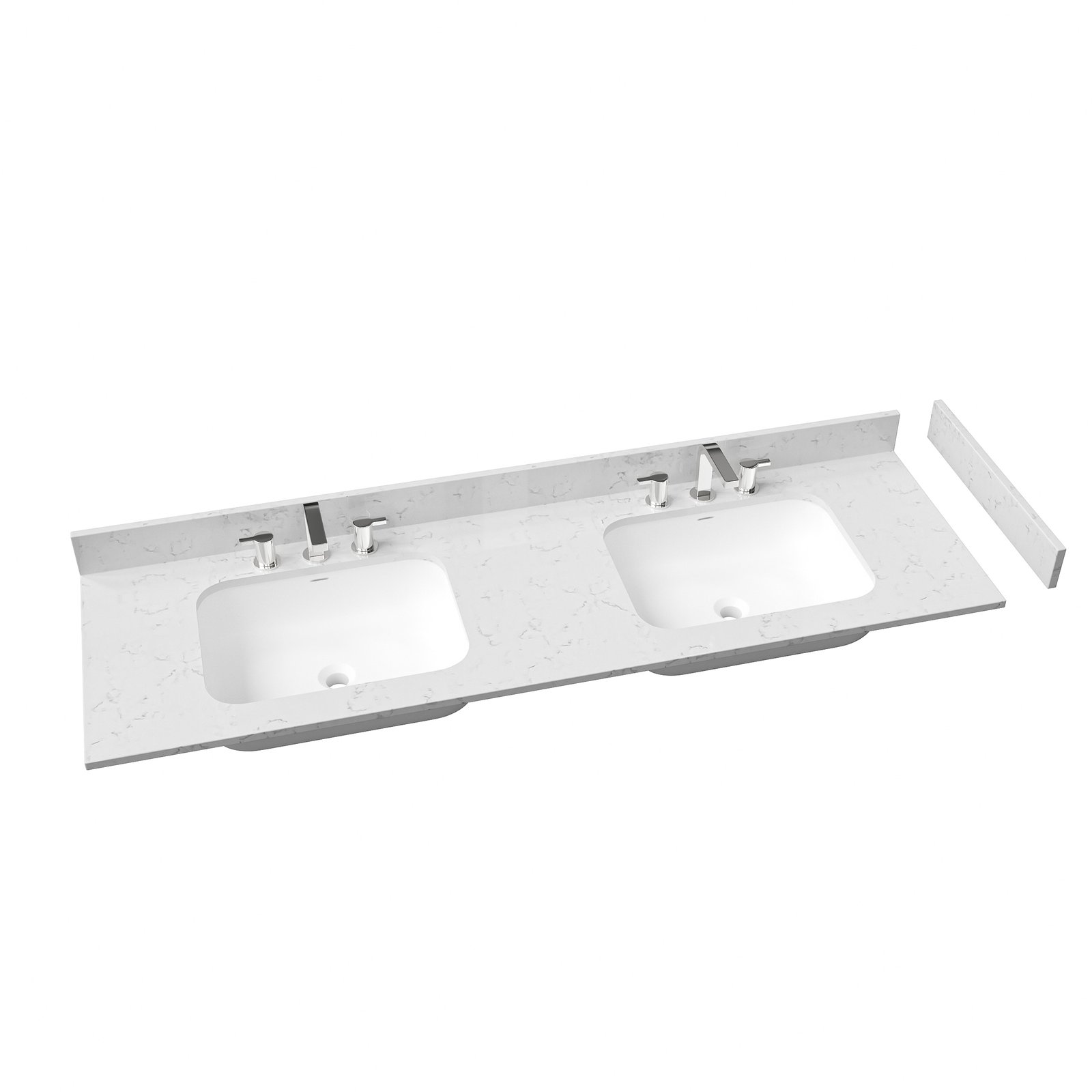 72″ Calacatta-Style Solid Surface Double Sink Bathroom Vanity Countertop with Rectangular Basins, Includes Backsplash & Sidesplash | KKR