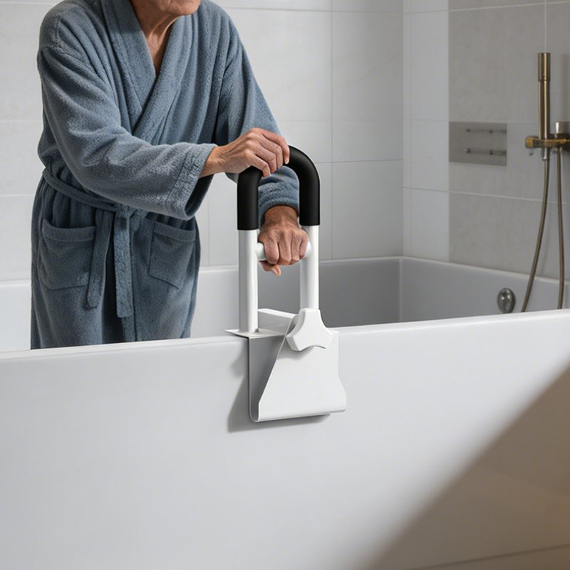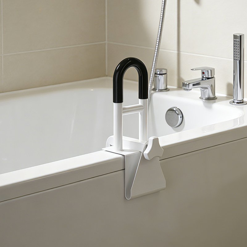 Designed to clamp firmly onto the bathtub edge, it delivers instant support and stability—without damaging walls or requiring complex installation.