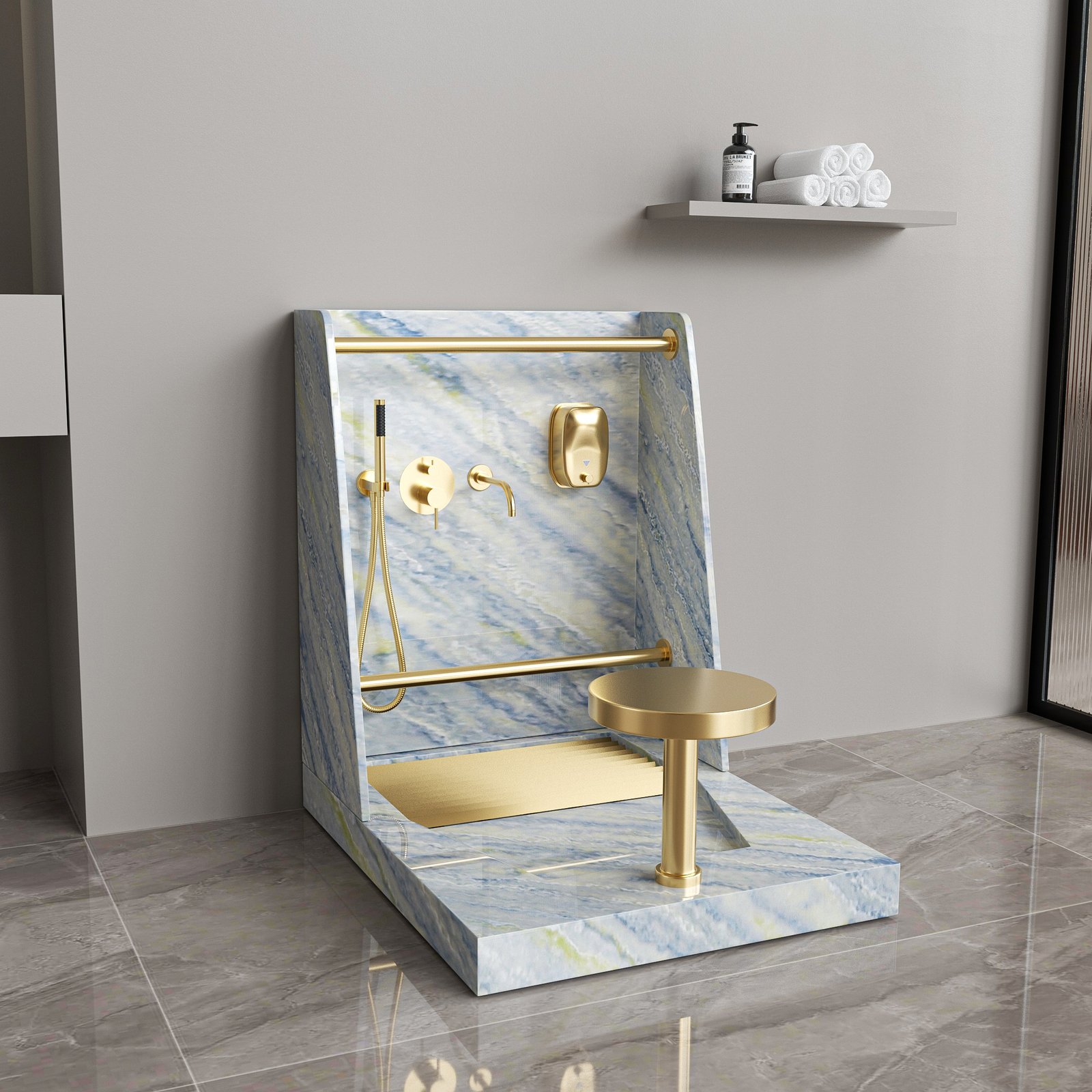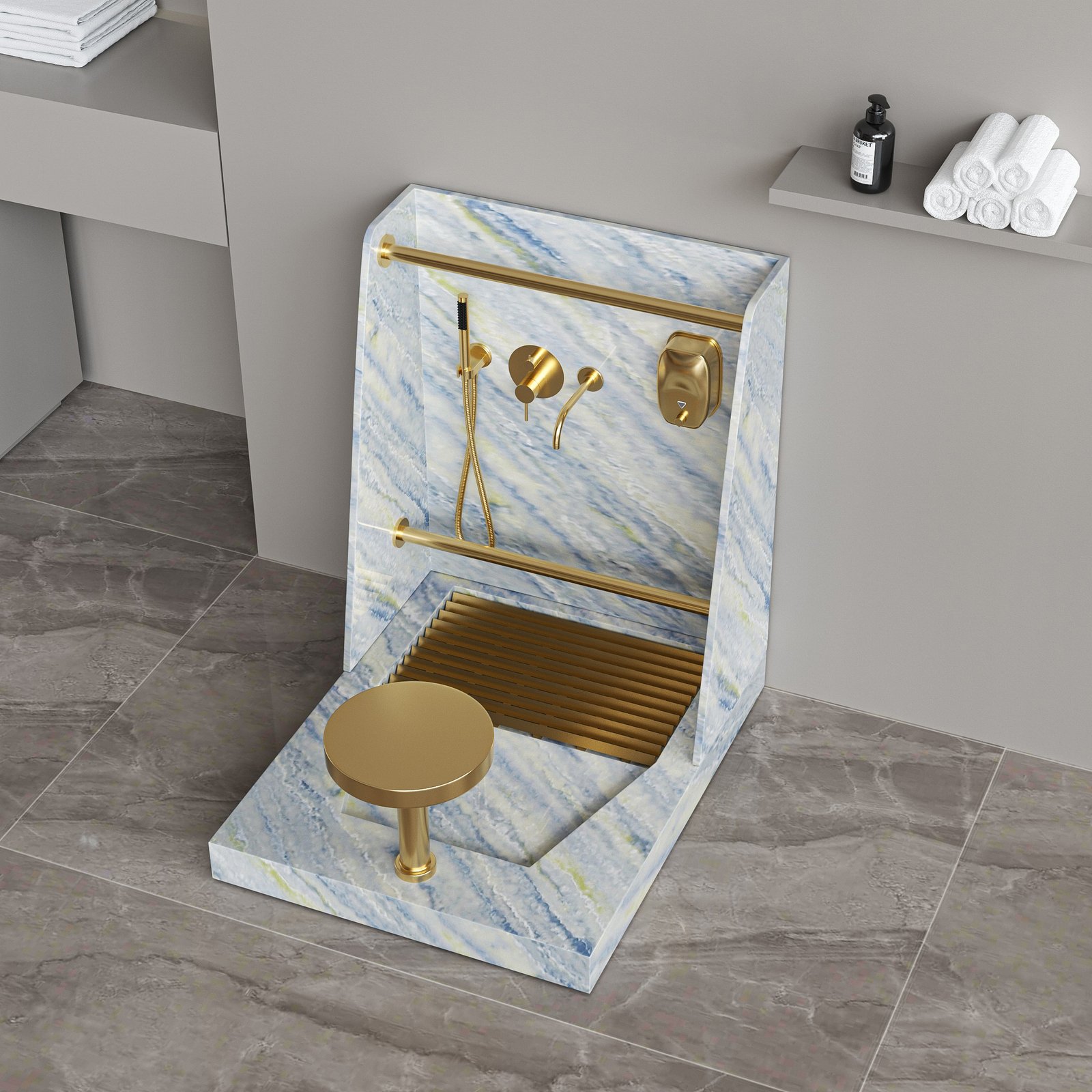 Marble Patterned Solid Surface Wudu Sink with Seat & Hand Shower | Custom Islamic Ablution Station for Mosques & Hotels