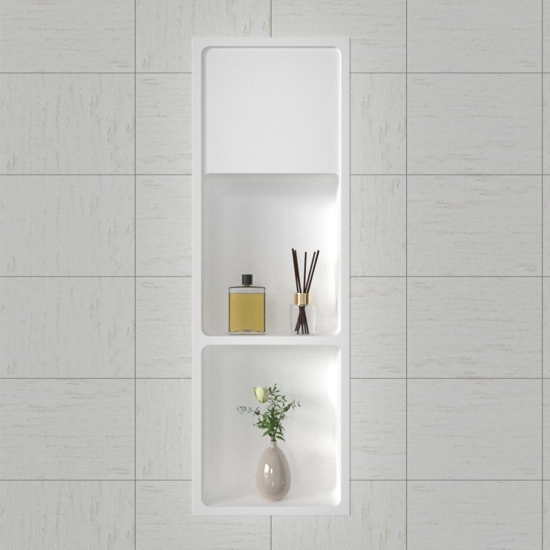 Double Layer Quartz Stone Shower Niche Wall Insert | Molded Bathroom Recessed Storage Shelf