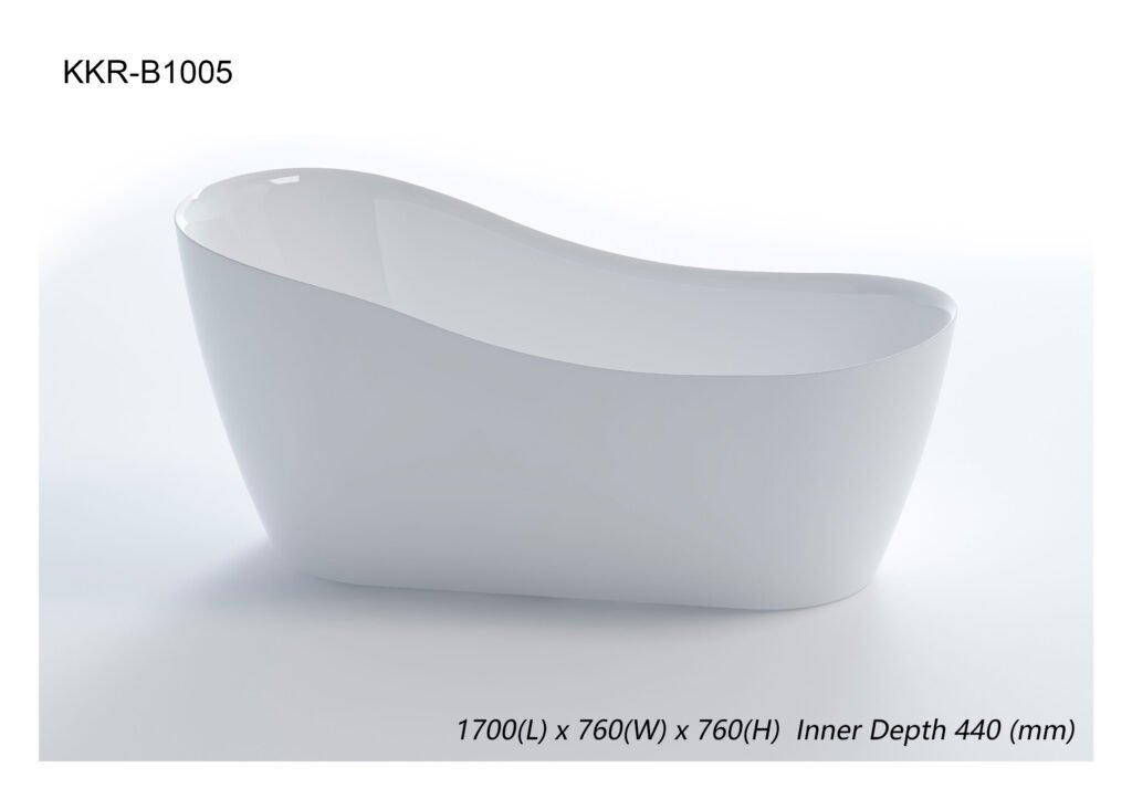 KKR-B1005 is a modern freestanding acrylic bathtub designed for hotel, apartment, and luxury residential bathroom projects, offering ergonomic comfort, easy maintenance, and seamless integration into complete bathroom solutions.