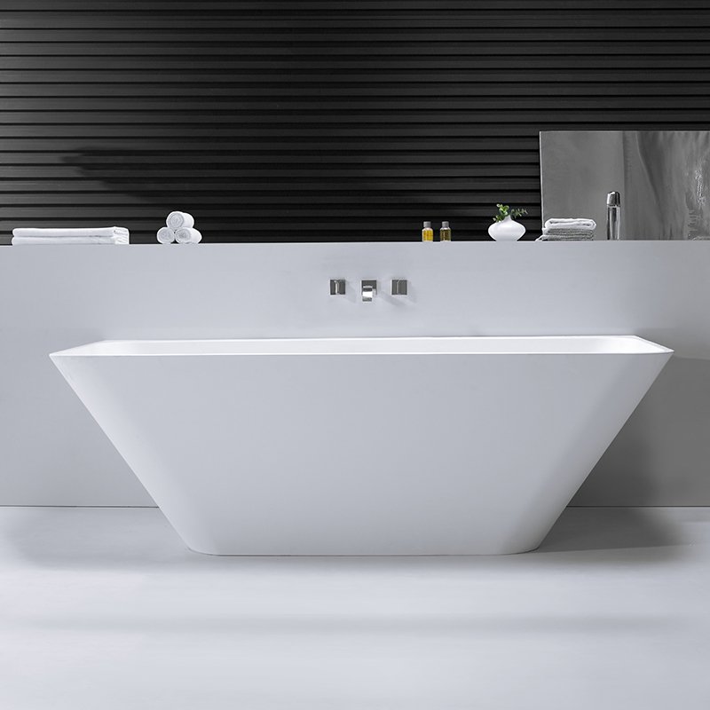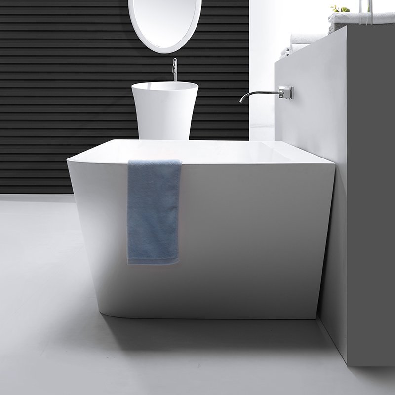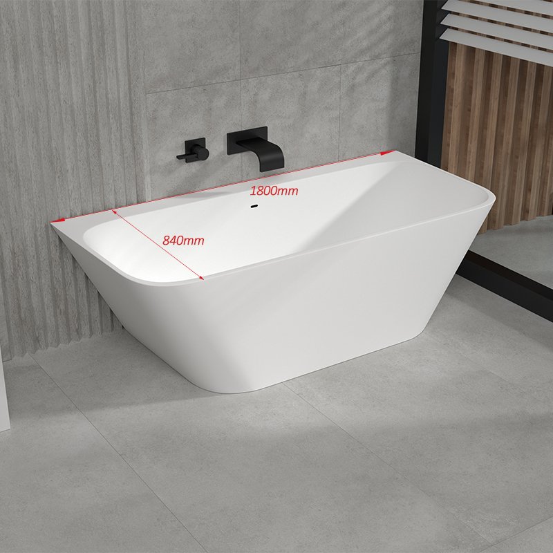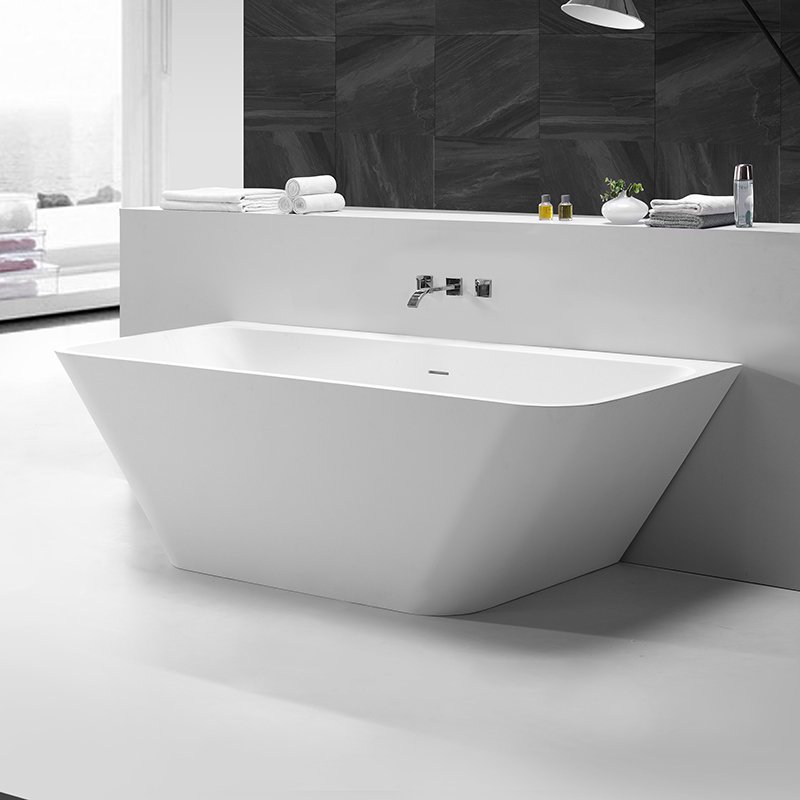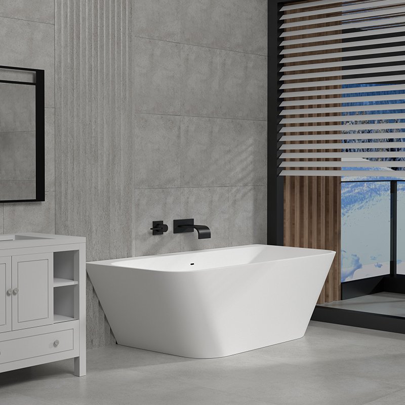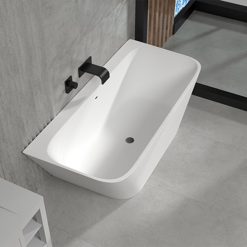 KKR-B053 is a freestanding solid surface bathtub designed with a clean rectangular outline and softly rounded edges, balancing architectural clarity with user comfort. Its minimalist geometry makes it an excellent choice for modern hotels, serviced apartments, and high-end residential projects where clean lines and spatial efficiency are essential.