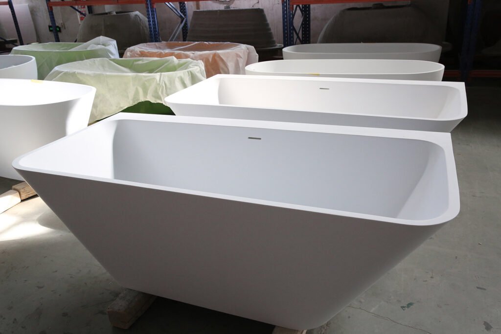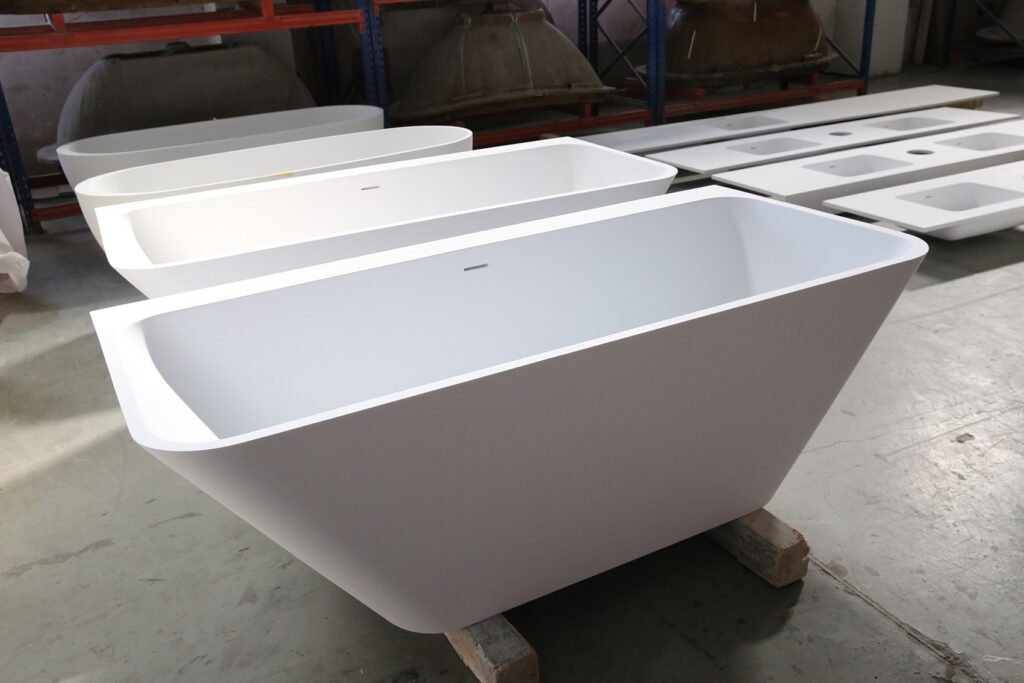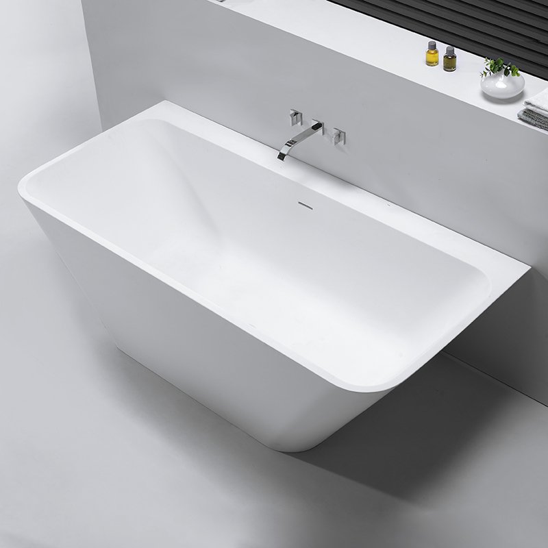 KKR-B053 Freestanding Solid Surface Bathtub – Rectangular Design with Ergonomic Sloped Interior