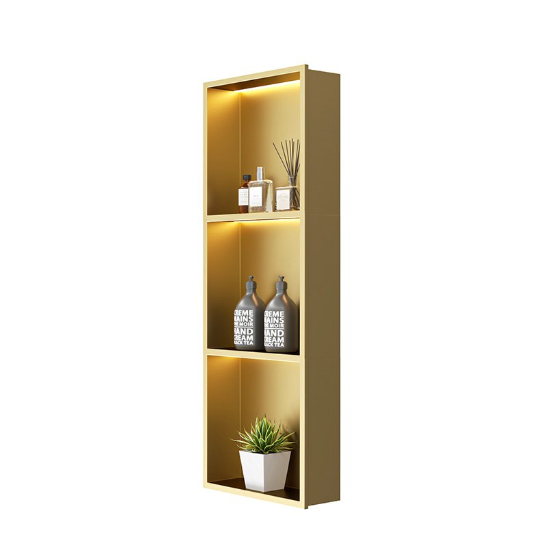 Gold Stainless Steel Shower Niche with LED Light | Luxury Wall Recessed Bathroom Storage Niche
