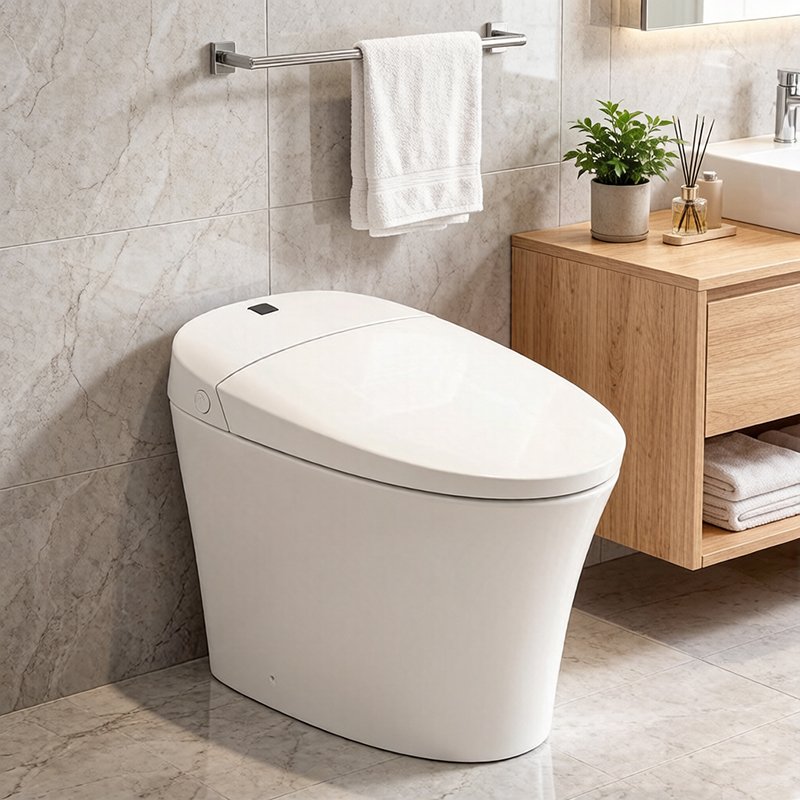 The KKR-CTE13004 Intelligent Smart Toilet combines modern bathroom design with advanced smart technology to deliver a cleaner, more comfortable, and more convenient bathroom experience. Designed for contemporary bathrooms, this floor standing smart toilet is widely used in luxury hotels, apartments, villas, and commercial building projects.