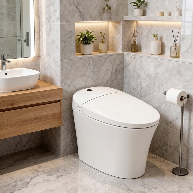 Equipped with instant heating technology, this smart toilet provides a continuous supply of warm water without the need for a traditional water tank. This ensures faster response time, improved comfort, and better energy efficiency, making it an ideal solution for modern bathroom environments.