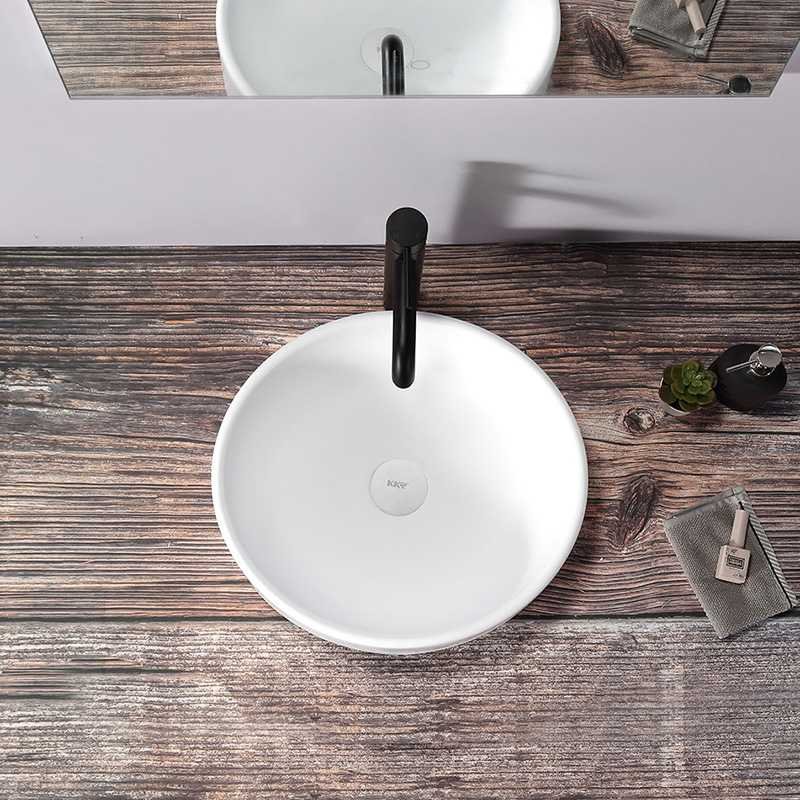 KKR-1110 Round Solid Surface Vessel Sink – Matte White | Modern Countertop Basin
