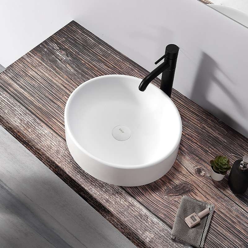 A minimalist round solid surface vessel sink in matte white. Seamless, hygienic, durable, and ideal for hotel, apartment, and premium residential installation.