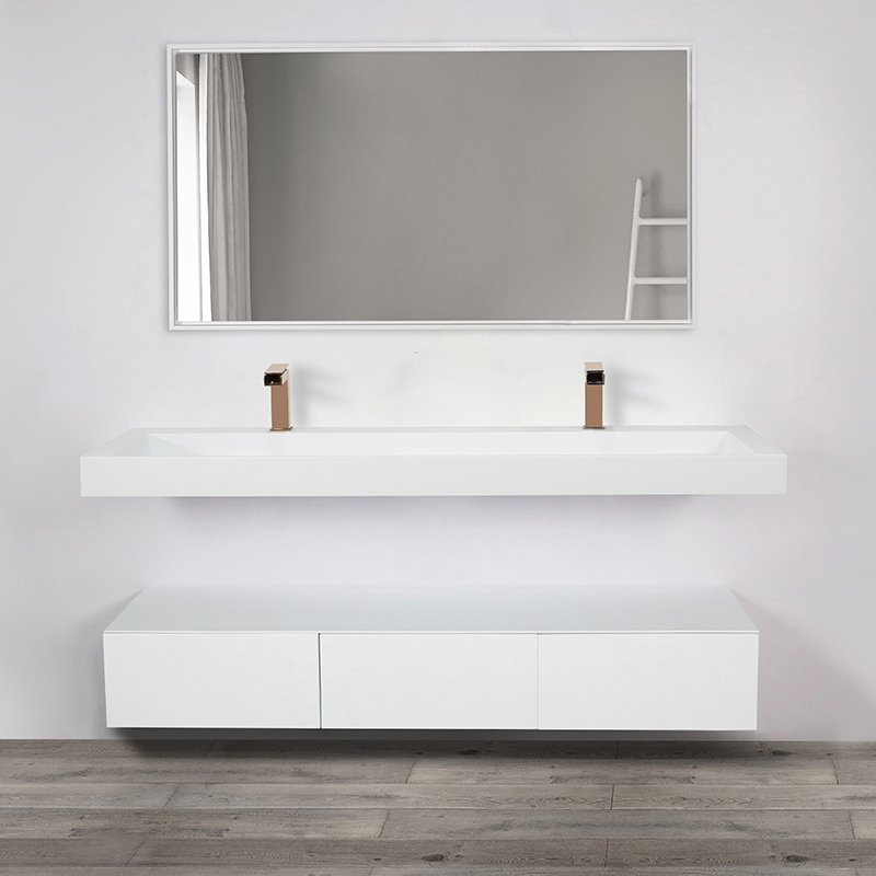 KKR-1212 Long Floating Wall-Hung Solid Surface Sink with Integrated Basin