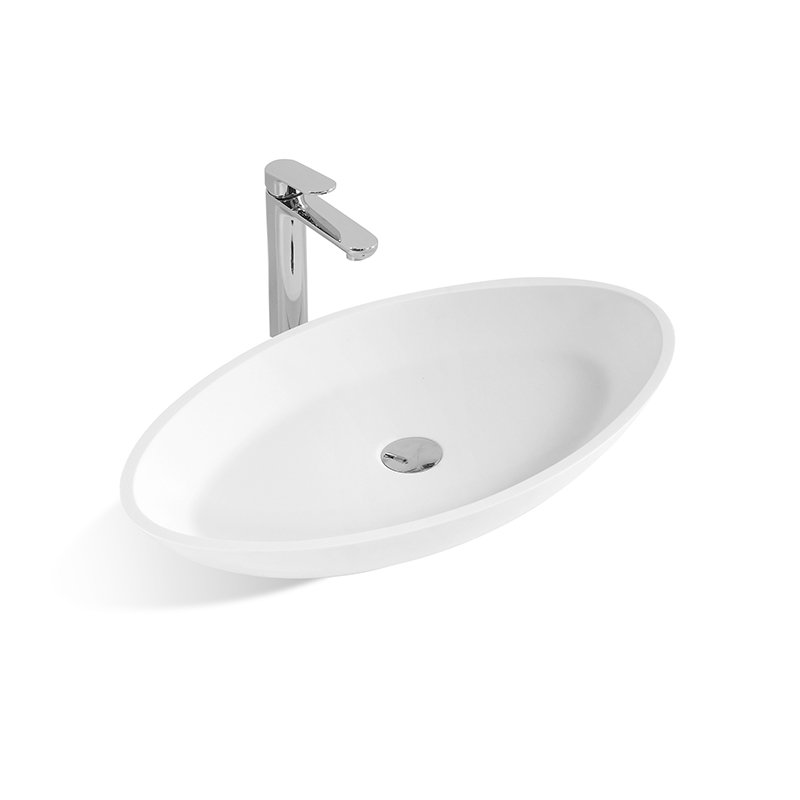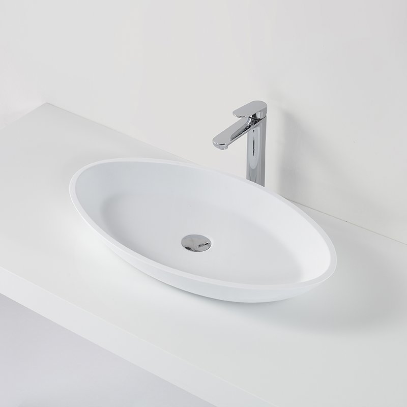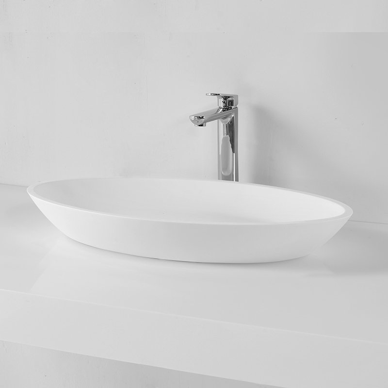 KKR-2120 Extra-Long Oval Solid Surface Vessel Sink – Matte White | Modern Countertop Basin