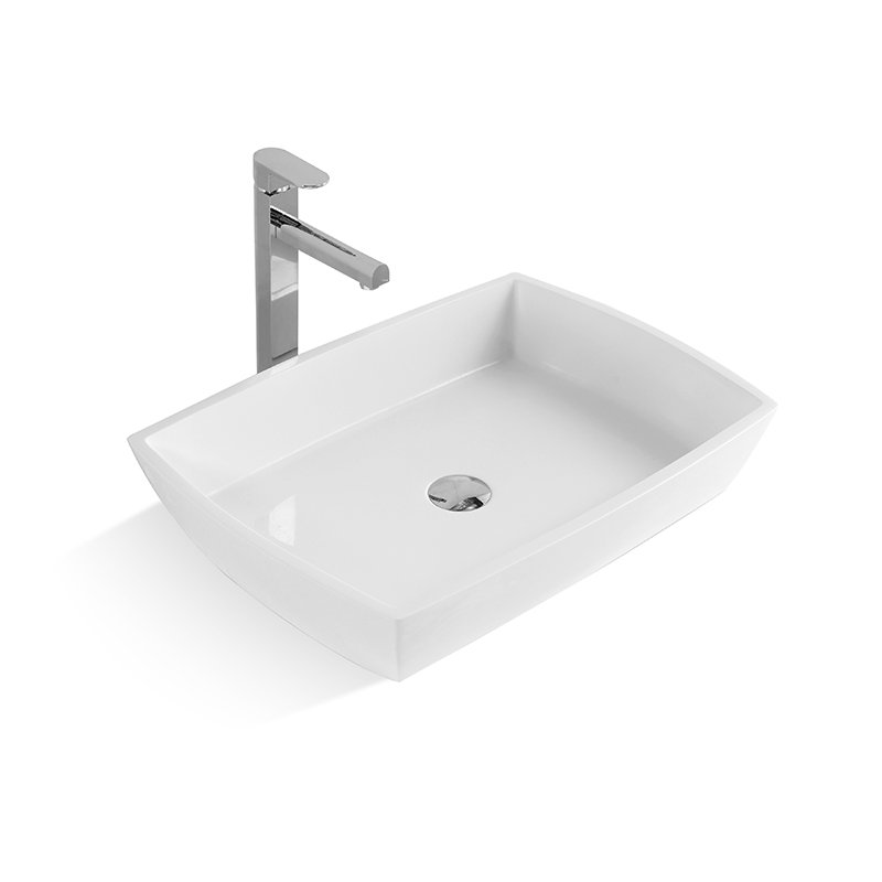 Modern rectangular solid surface vessel sink in matte white. Durable, seamless, hygienic, and ideal for hotel, apartment, and upscale residential projects.