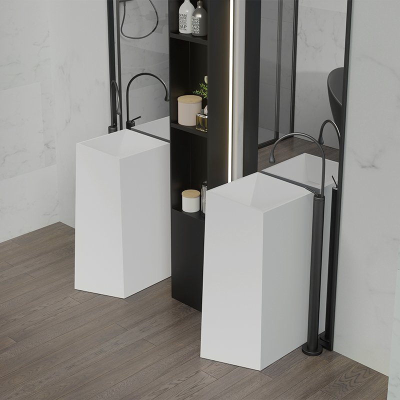 KKR-1387 Geometric Pedestal Basin – Angular Solid Surface Freestanding Wash Basin for Modern Bathrooms