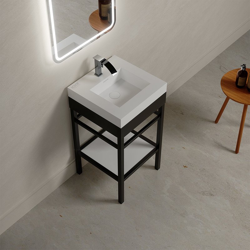 KKR-1804 Solid Surface Freestanding Console Sink with Square Basin and Metal Frame