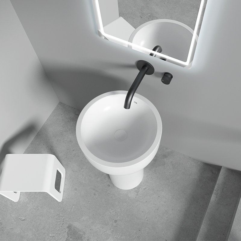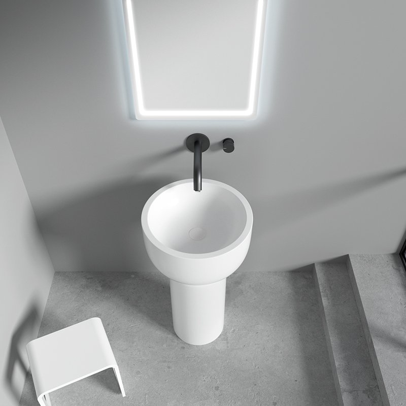 KKR-1903 Solid Surface Freestanding Pedestal Sink with Bowl-Top Minimalist Design