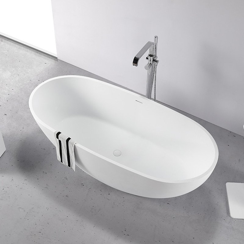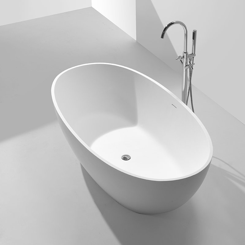 KKR-B003 Oval Freestanding Solid Surface Bathtub – Matte White | Modern Soaking Tub