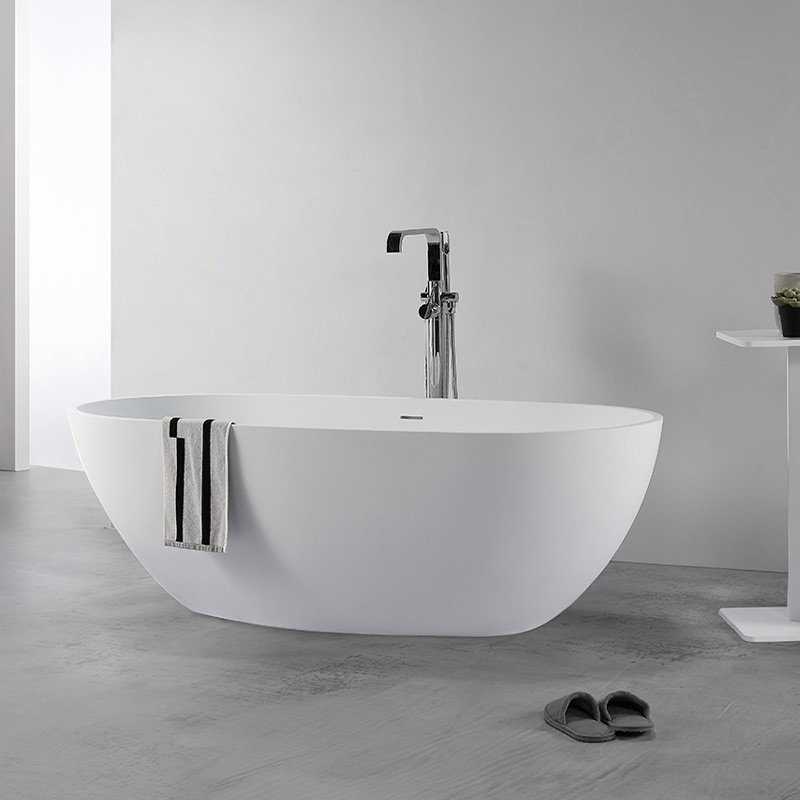 KKR-B008 Oval Freestanding Solid Surface Bathtub – Matte White | Modern Soaking Tub