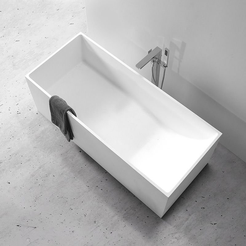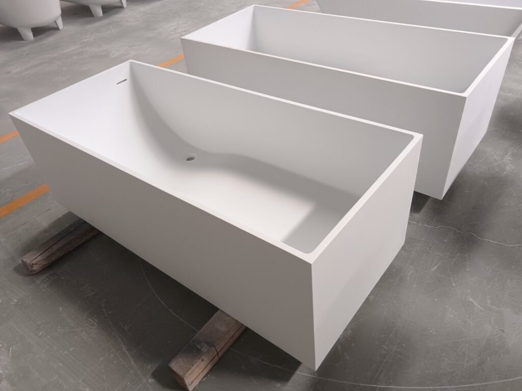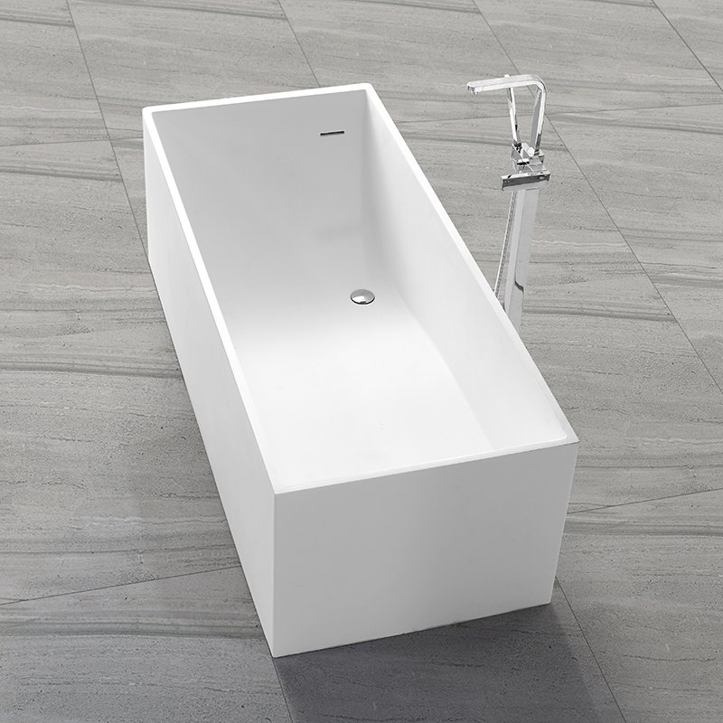 KKR-B029 Ergonomic Rectangular Freestanding Solid Surface Bathtub – Matte White | Deep-Soaking Comfort with Curved Interior