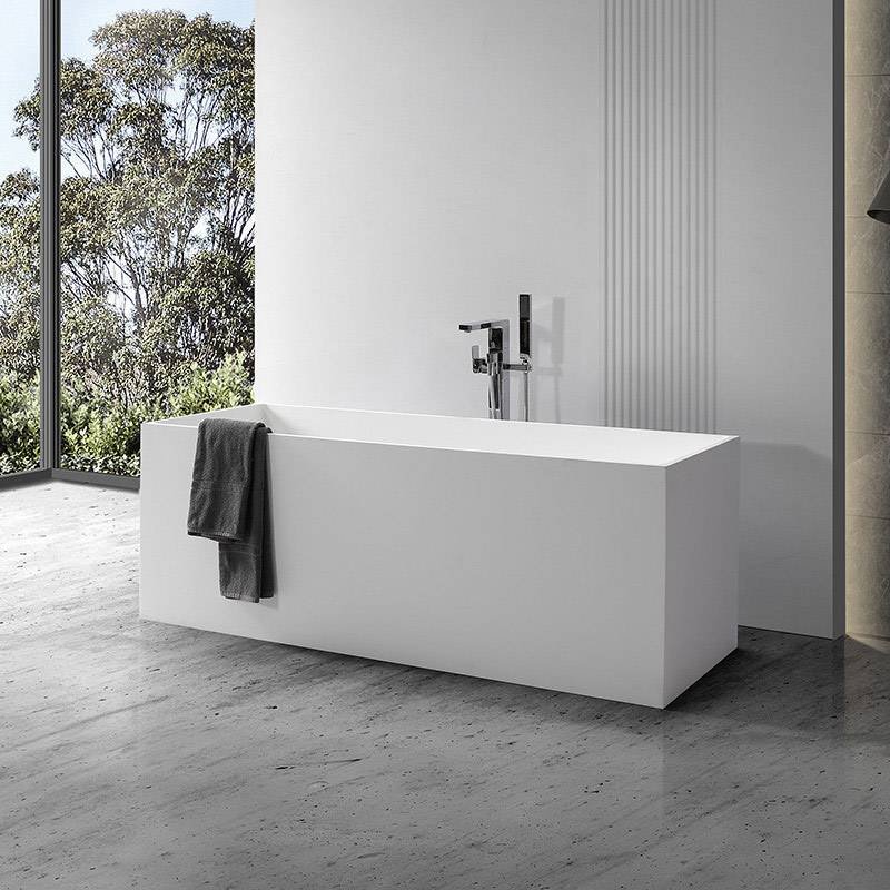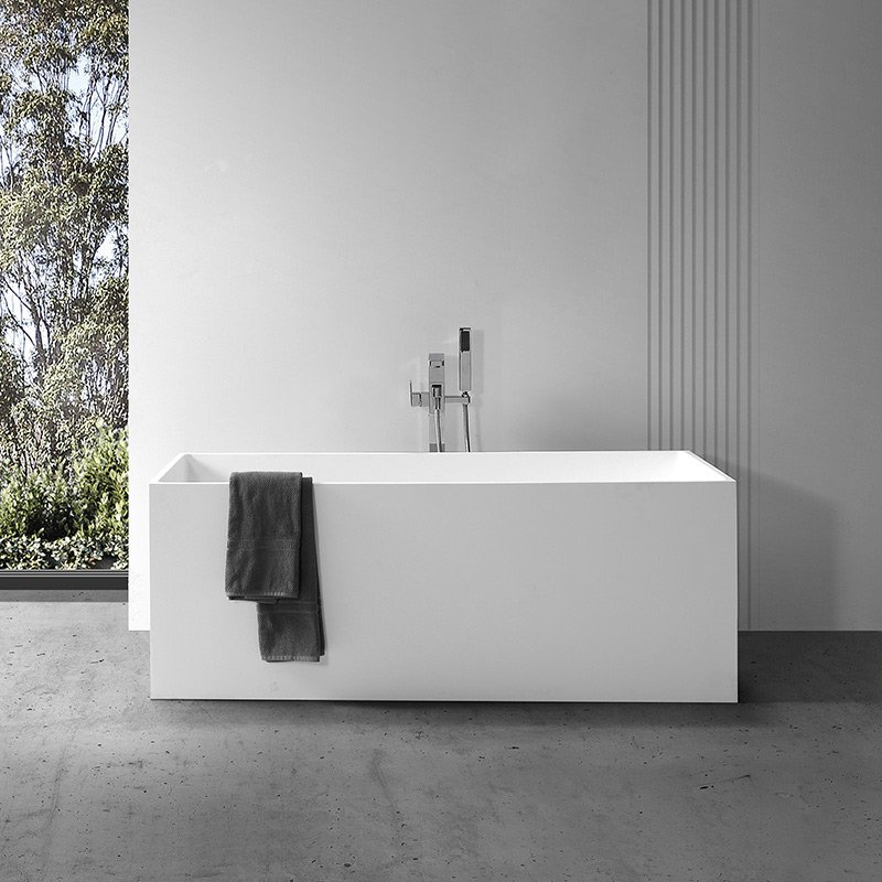 A modern rectangular freestanding bathtub with a comfortable curved interior. KKR-B029 combines a minimalist exterior with an ergonomic soaking design, offering superior comfort and long-term durability for high-end residential and hospitality projects.