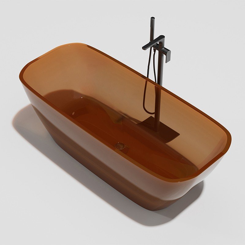 Crafted from premium clear resin, this bathtub features a refined sculpted silhouette with softly flared sides and a smooth, continuous rim. The warm amber transparency creates a layered visual depth, allowing light to pass through the tub body and interact naturally with surrounding architecture—an effect especially valued in spa suites, sea-view bathrooms, and signature hotel rooms.
