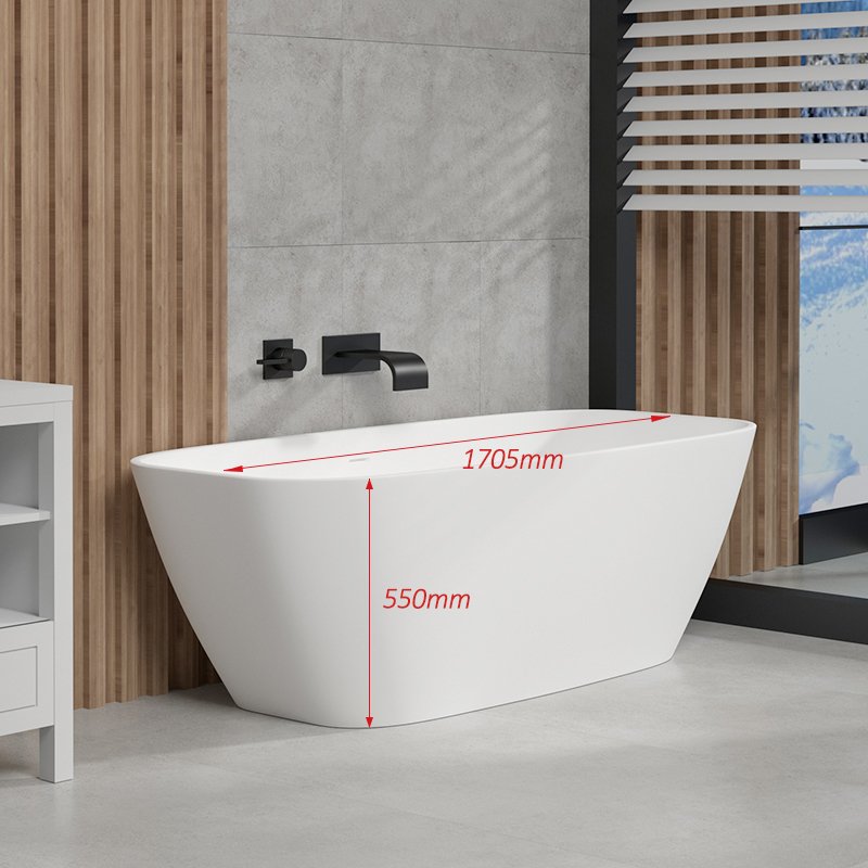 KKR-B008 Oval Freestanding Solid Surface Bathtub – Matte White | Modern Soaking Tub
