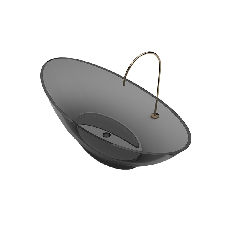 The KKR-B051 is a smoky gray transparent freestanding bathtub made from clear resin, designed for luxury hotels, villas, and spa bathrooms that demand sculptural form and visual impact.