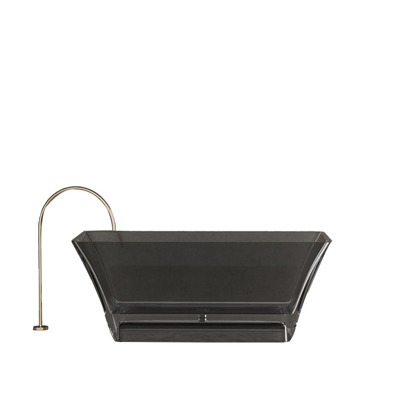 Its rectangular silhouette with softened flared sides delivers a strong architectural presence while maintaining visual lightness through clear resin transparency.