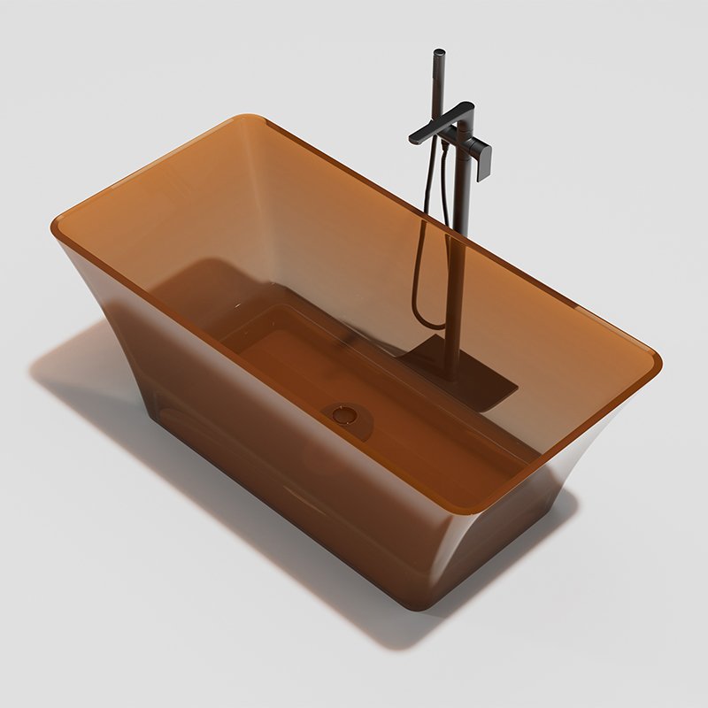 KKR-B074 is a bold architectural transparent freestanding bathtub featuring a sharp rectangular silhouette and warm amber tone. Crafted from high-performance clear resin, this model is designed for luxury hotel bathrooms, seaside villas, and premium spa projects that demand strong visual impact and material distinction.