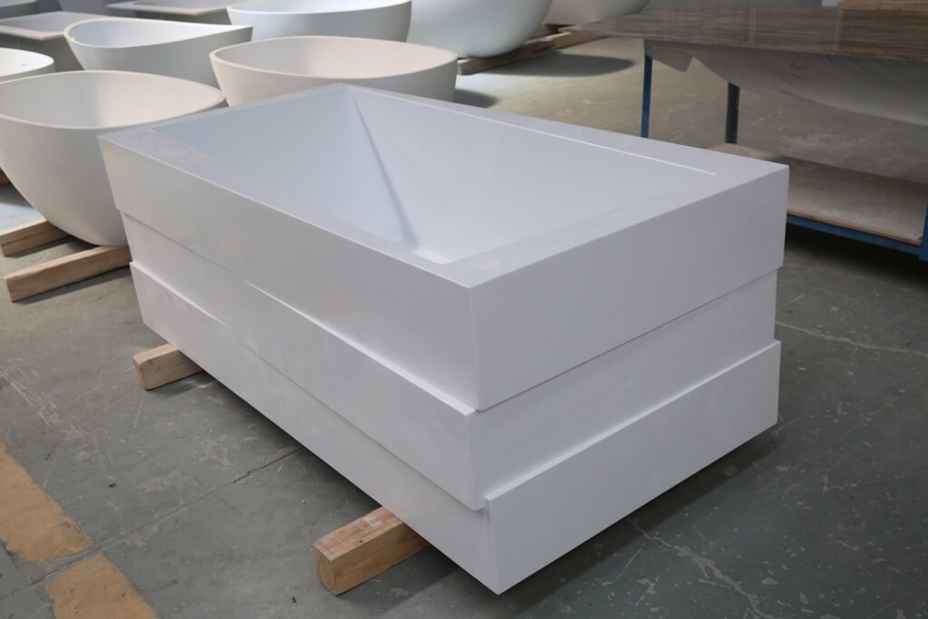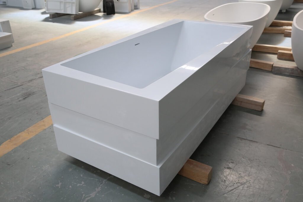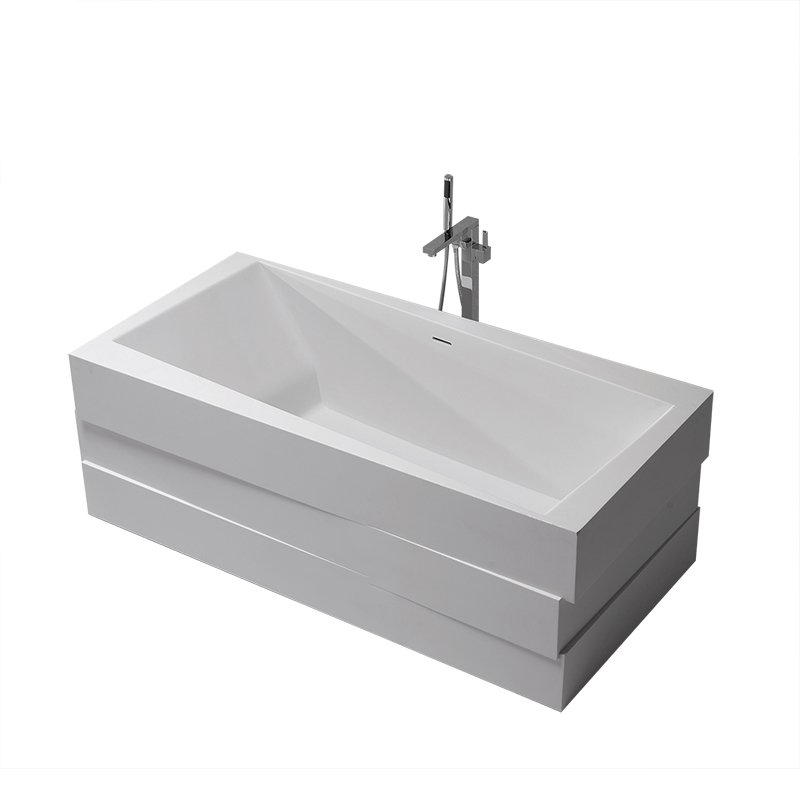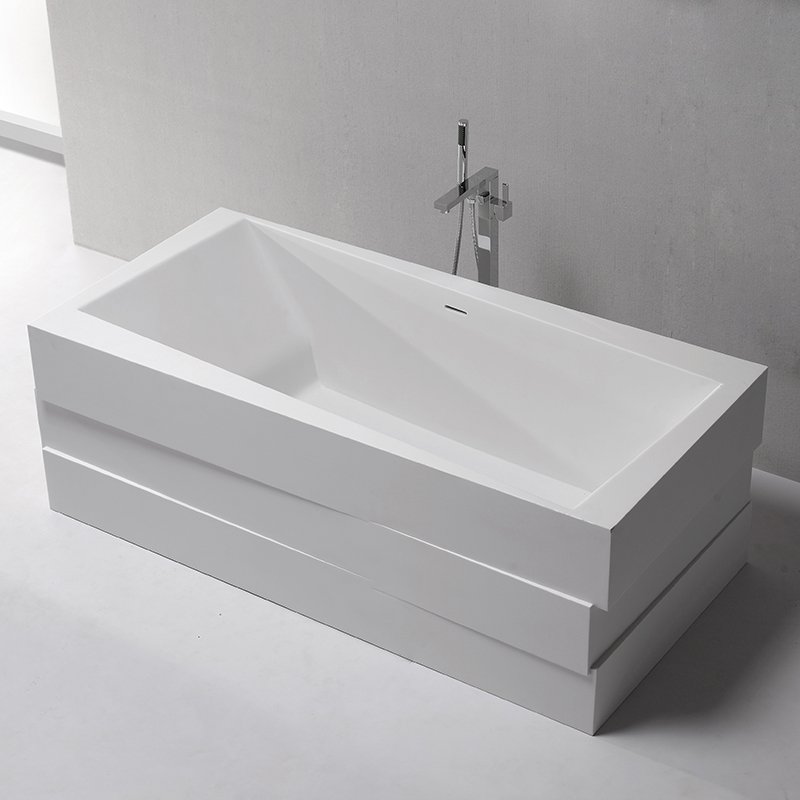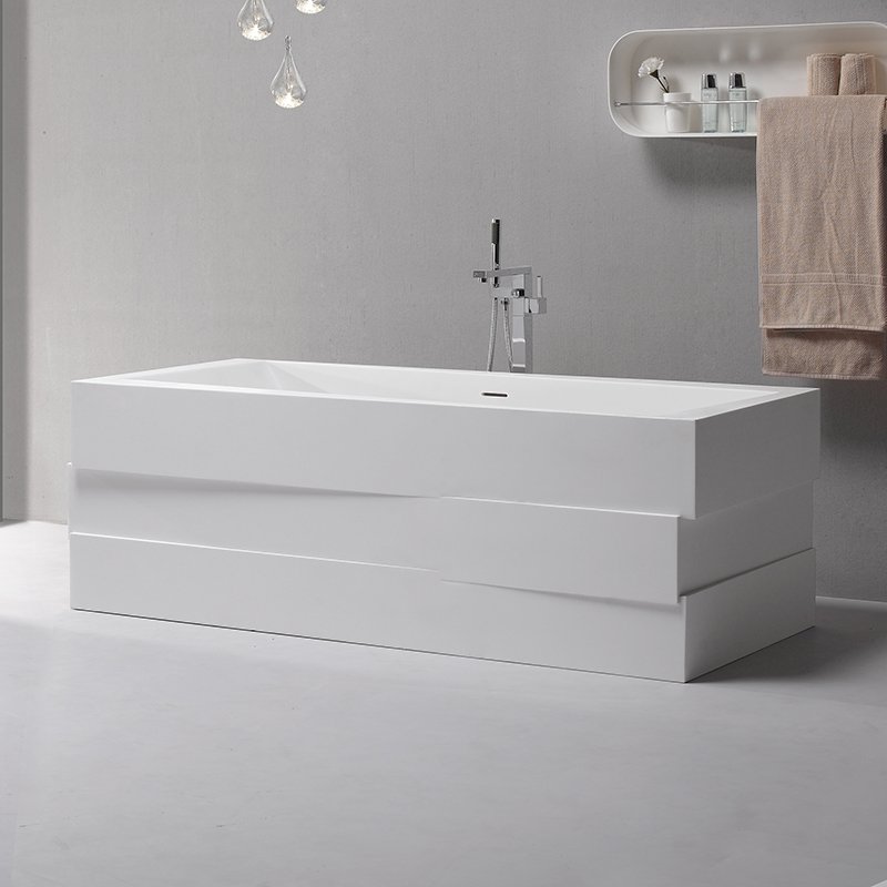KKR-B085 Rectangular Freestanding Solid Surface Bathtub with Ergonomic Sloped Interior