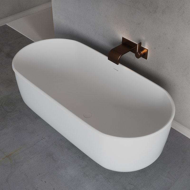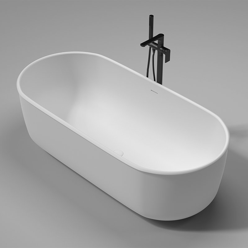 A freestanding oval solid surface bathtub with ergonomic interior curves, designed for luxury hotels, villas, and modern residential bathrooms.