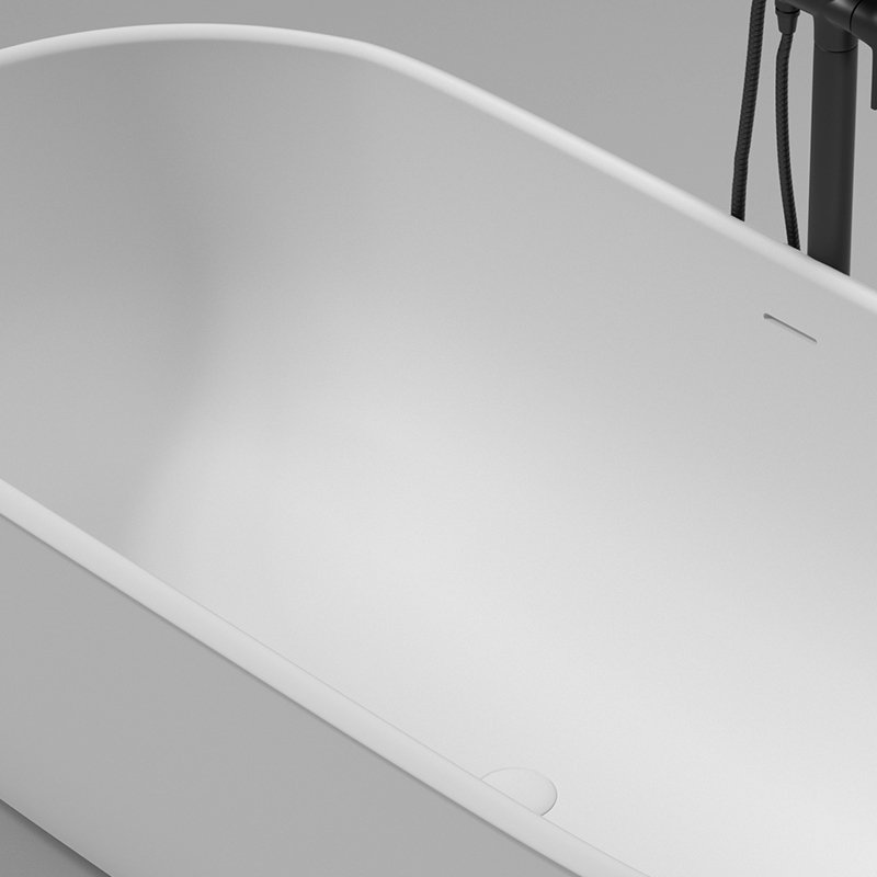 KKR-B066 Oval Freestanding Solid Surface Bathtub – Matte White | Ultra-Thin Rim Modern Soaking Tub