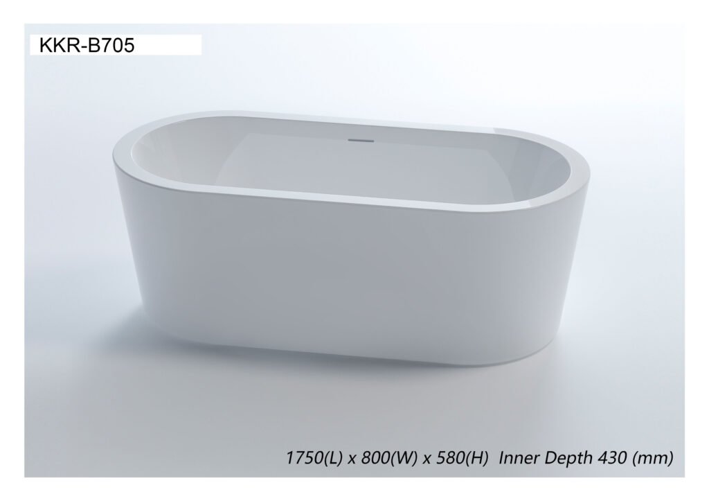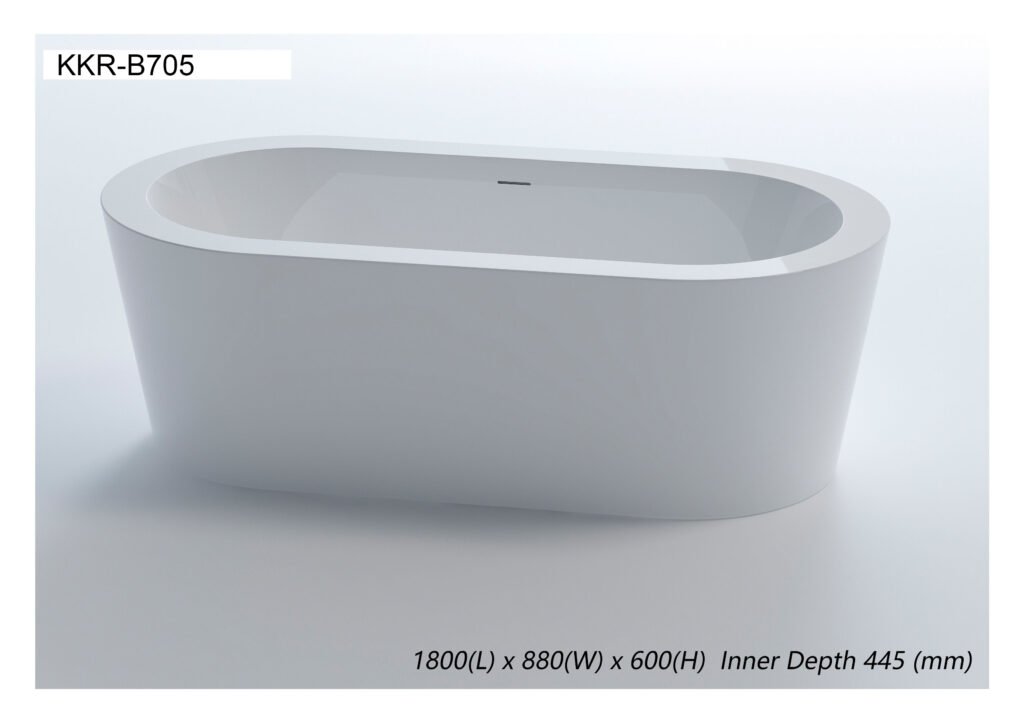 The KKR-B705 is a modern freestanding acrylic bathtub designed for hotel and residential projects, offering lightweight installation, easy maintenance, and long-lasting comfort with a clean oval aesthetic.