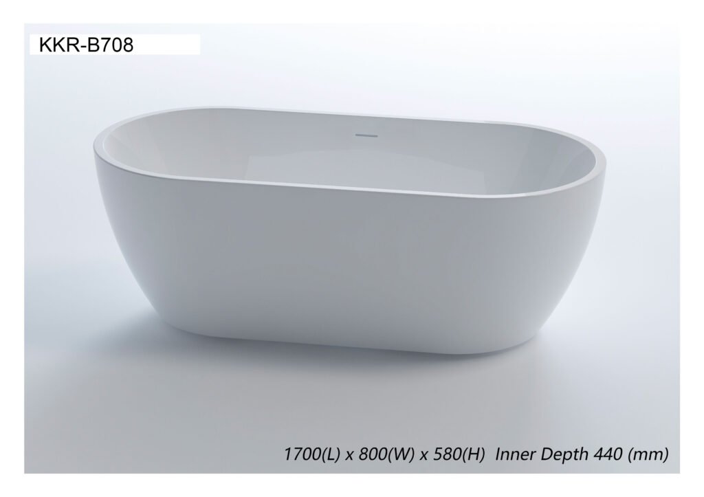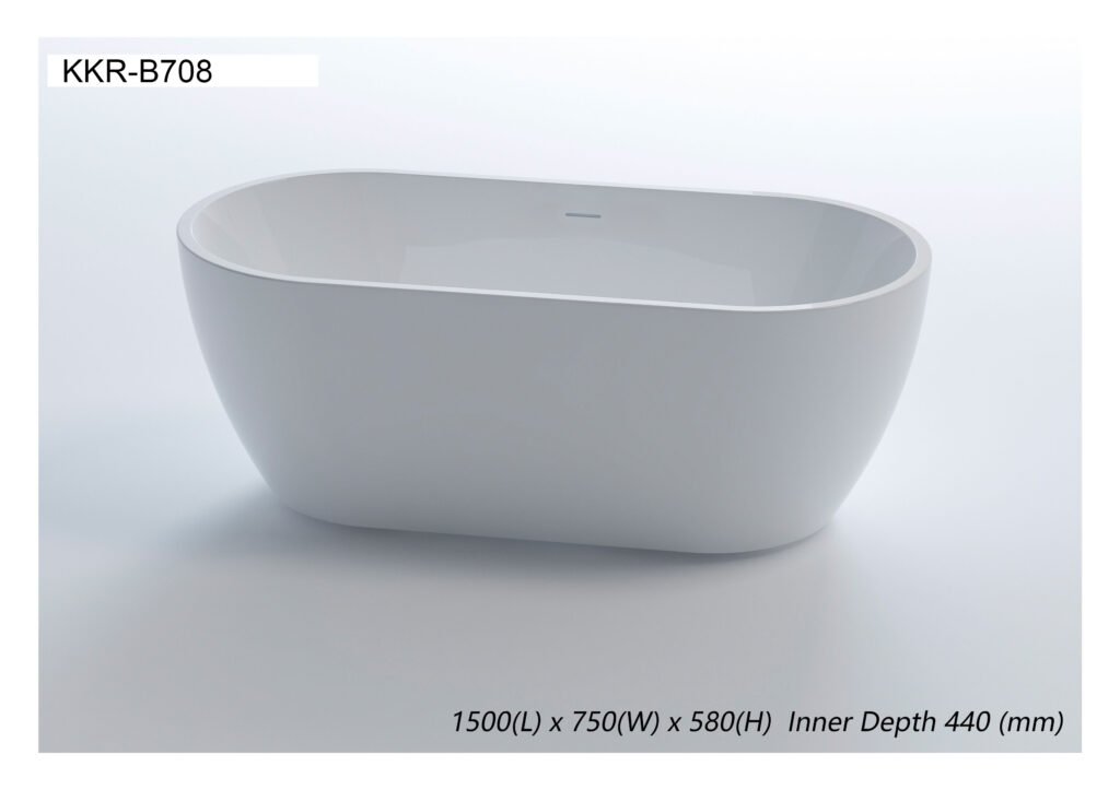 The KKR-B708 Acrylic Bathtub is a contemporary freestanding bathtub developed for modern hotels, serviced apartments, villas, and high-end residential projects that value refined aesthetics and practical performance.