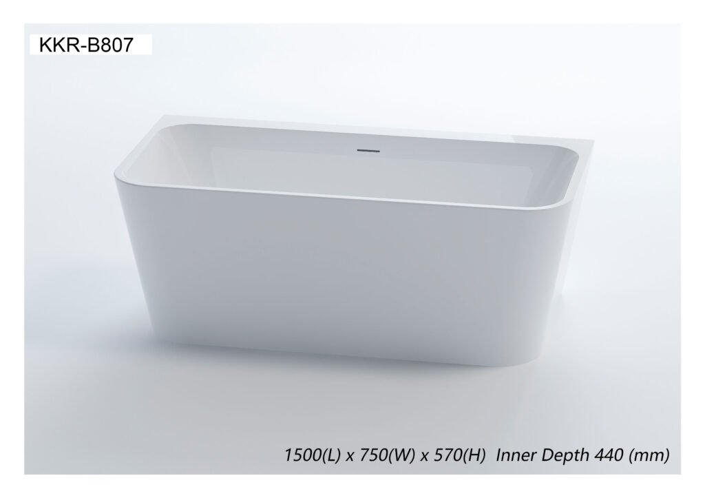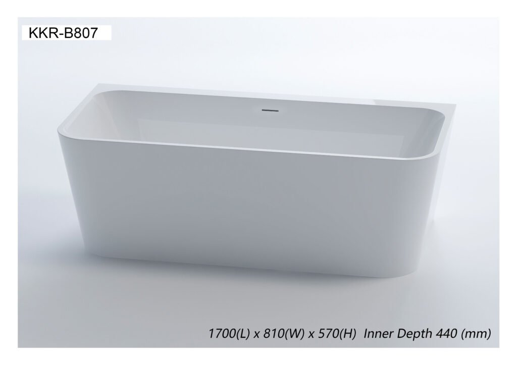 The KKR-B807 is a freestanding acrylic bathtub with a modern rectangular profile, designed for hotel and apartment projects requiring easy installation, low maintenance, and consistent long-term performance.