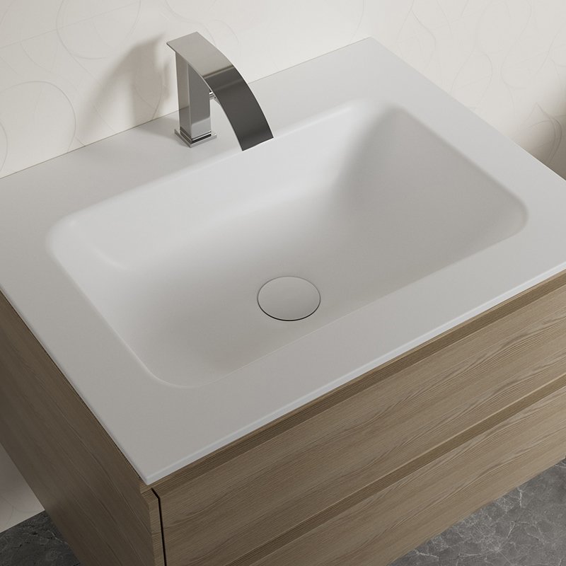 Manufactured from high-quality solid surface material, KKR-FGE01 delivers excellent resistance to moisture, stains, and daily wear. The integrated design simplifies installation, improves cleaning efficiency, and ensures consistent quality across large-volume vanity projects. Size, basin depth, and color can be customized to match different cabinet structures and project requirements.