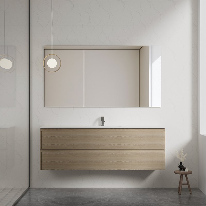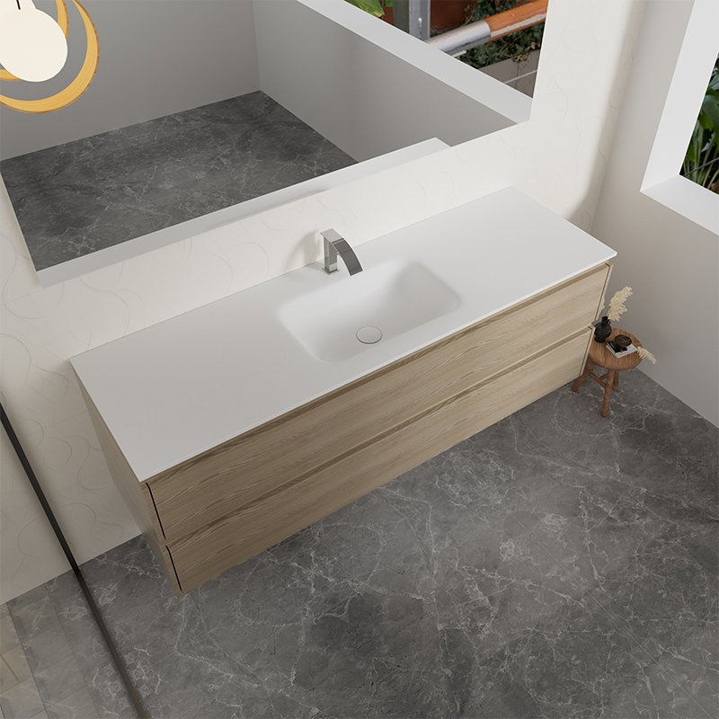 Bathroom vanity cabinets are primarily constructed from solid wood, selected for its structural strength, natural aesthetics, and long-term durability. Solid wood provides excellent load-bearing performance, making it suitable for supporting basin weight, countertop use, and daily opening and closing of drawers and doors.