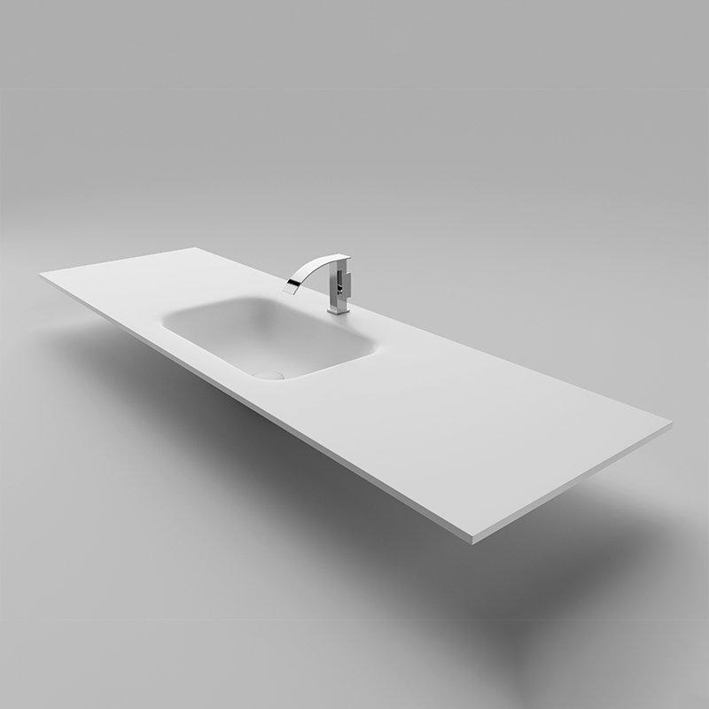 KKR-1843 Integrated Rectangular Solid Surface Sink Countertop with Linear Basin