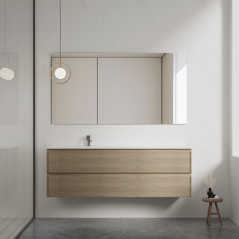 Bathroom vanity cabinets are primarily constructed from solid wood, selected for its structural strength, natural aesthetics, and long-term durability. Solid wood provides excellent load-bearing performance, making it suitable for supporting basin weight, countertop use, and daily opening and closing of drawers and doors.