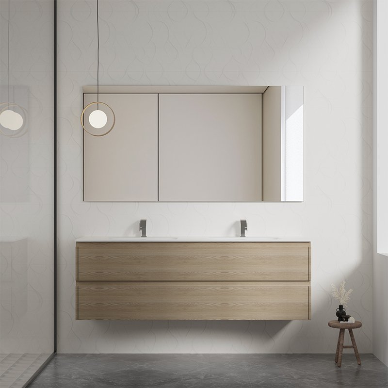 Bathroom vanity cabinets are primarily constructed from solid wood, selected for its structural strength, natural aesthetics, and long-term durability. Solid wood provides excellent load-bearing performance, making it suitable for supporting basin weight, countertop use, and daily opening and closing of drawers and doors.