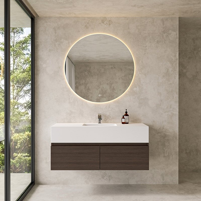 KKR-FGE16 Integrated Sink Bathroom Vanity with Long Downstand Solid Surface Countertop