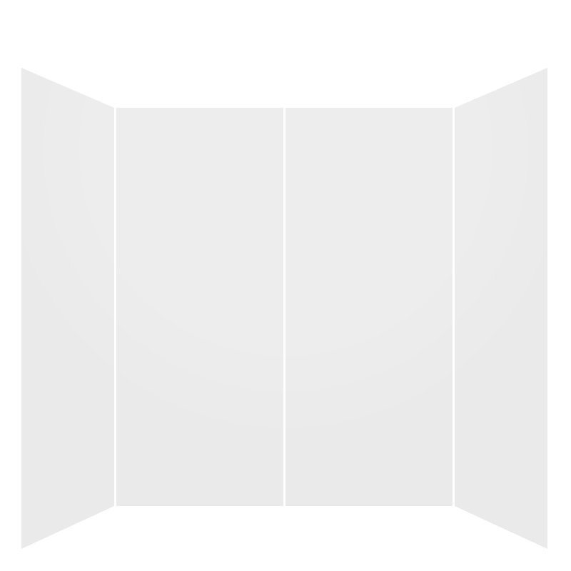 Pure white solid surface shower wall panels with a seamless, grout-free finish for modern hotel and residential bathrooms.