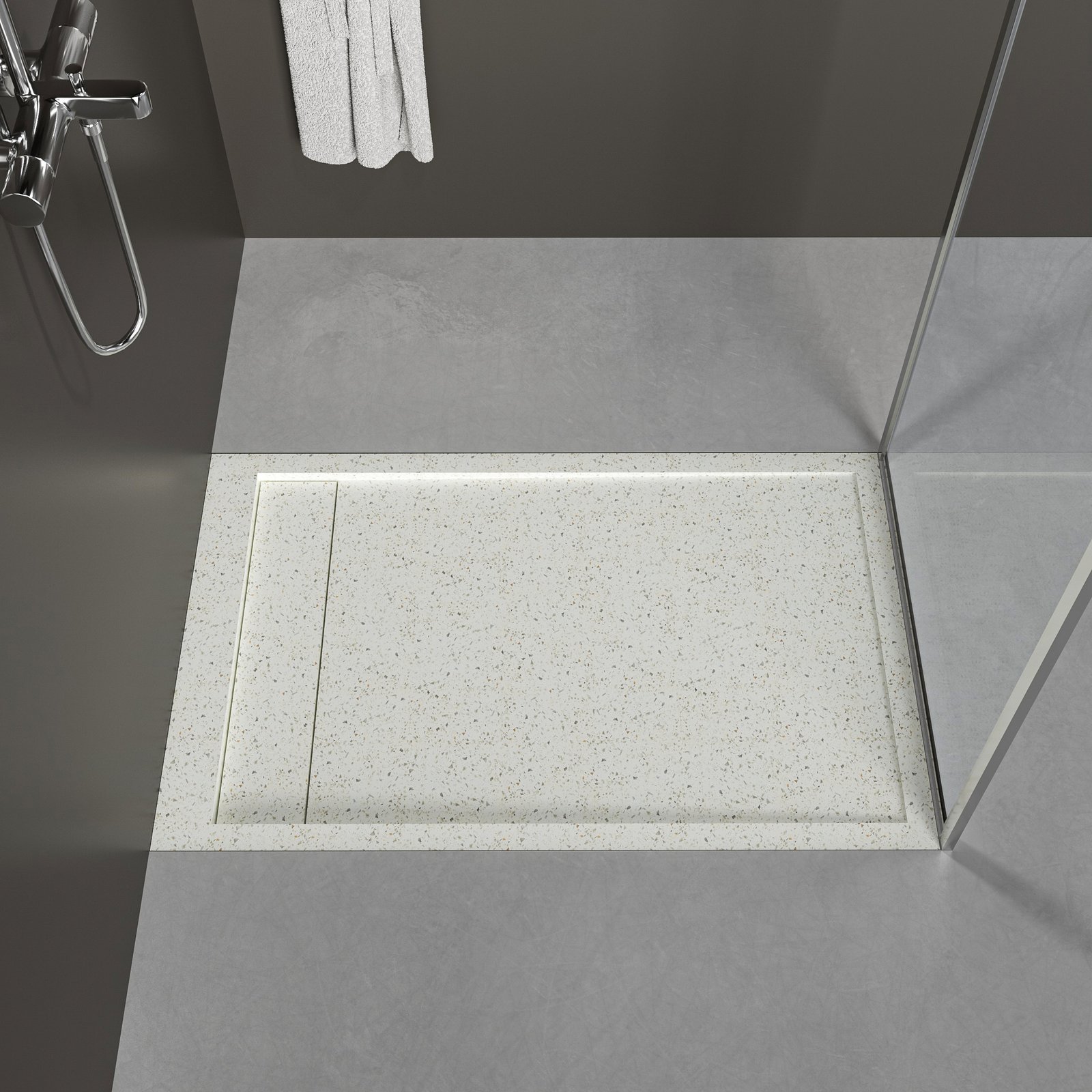 Light Terrazzo Solid Surface Shower Tray | Subtle Speckled Shower Base for Modern Bathroom Design