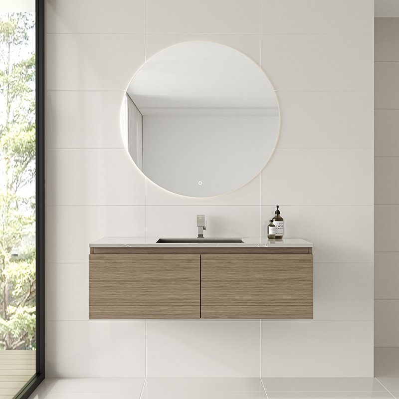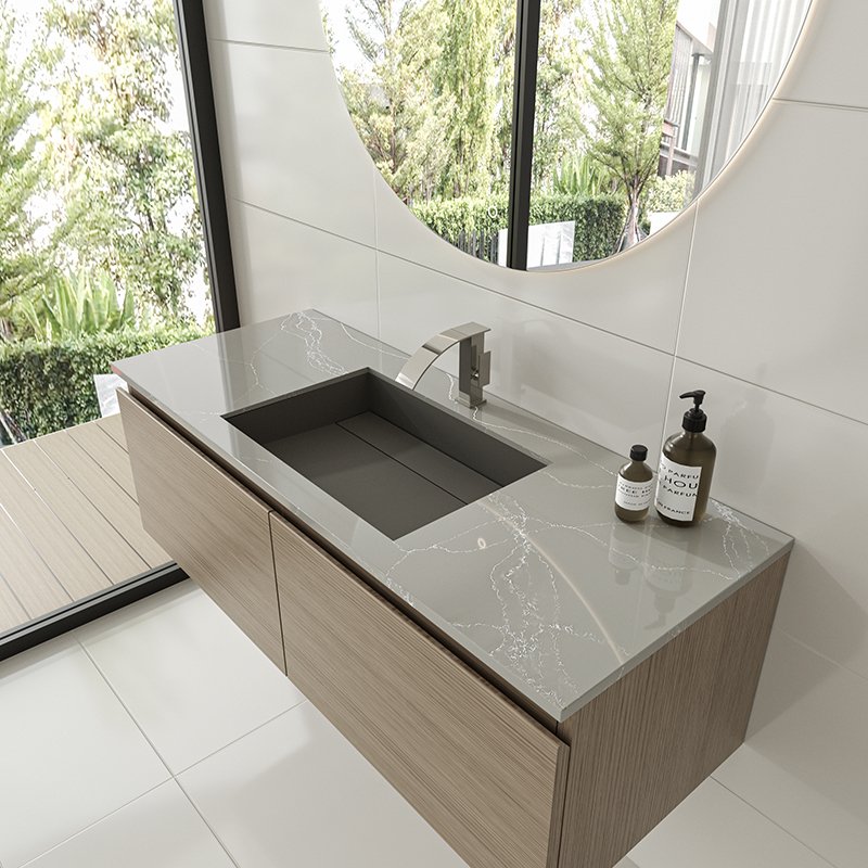This model is configured with a grey undermount sink, creating a clean countertop surface and enhancing daily usability. The integrated design ensures precise alignment with bathroom cabinets, making it suitable for floating vanities, wall-mounted cabinets, and custom-built furniture.