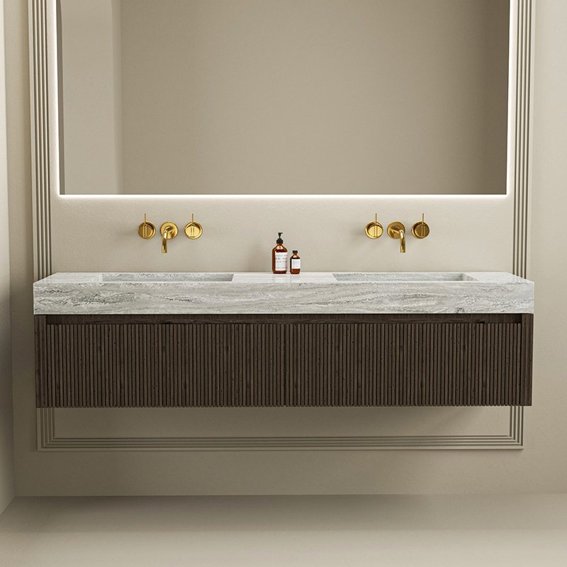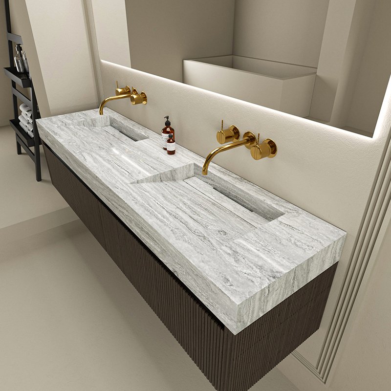 As a fully customizable solution, this marble-pattern vanity sink can be adapted in length, basin depth, faucet position, edge profile, and cabinet configuration. The M8887 color works particularly well with brushed brass, matte black, and stainless-steel fixtures, allowing designers to create cohesive, high-end bathroom environments without the risks associated with natural marble.