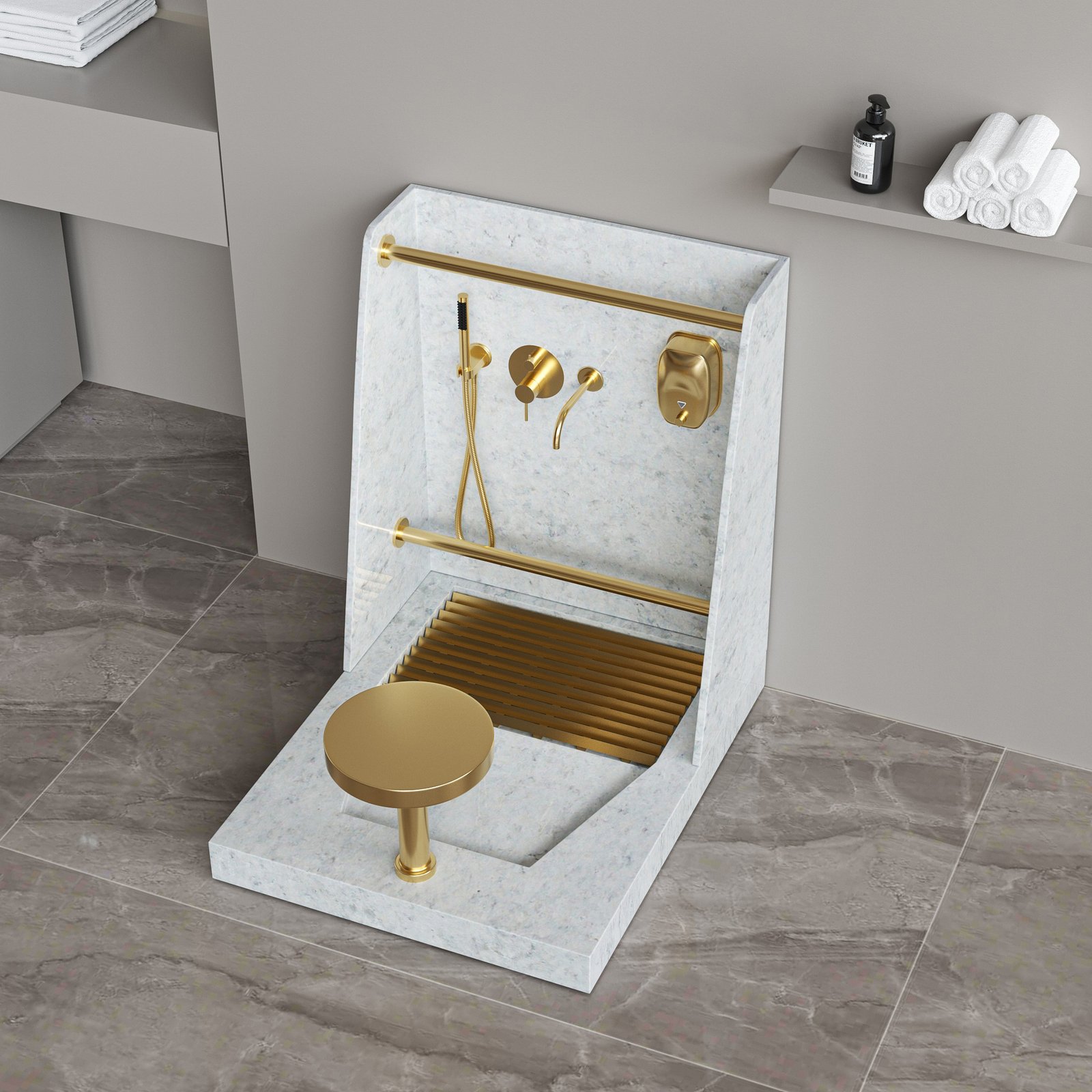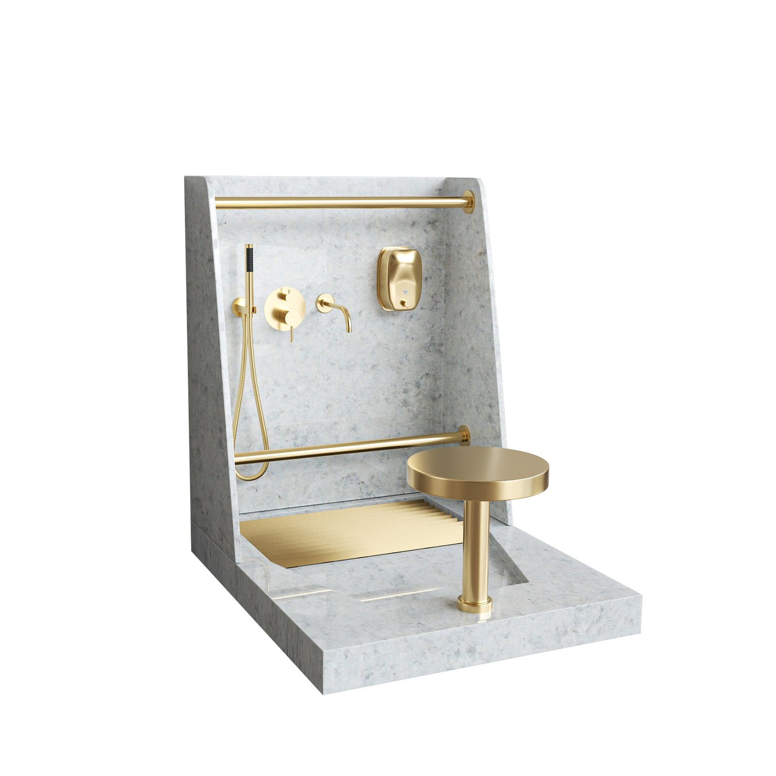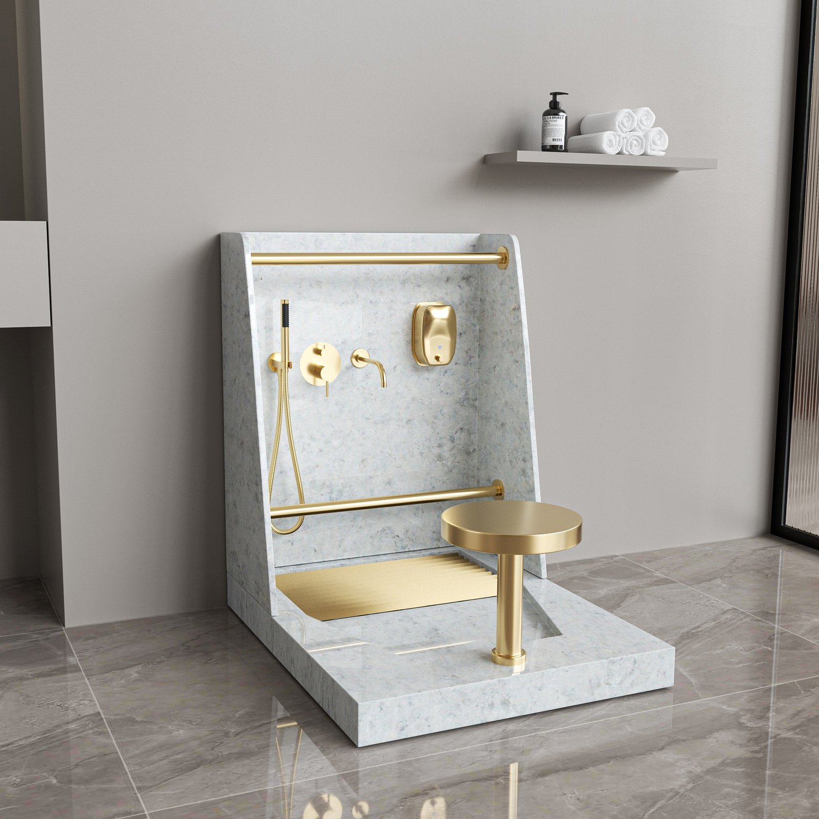 Marble Pattern Dual-Function Wudu Wash Station | Modern Ablution Sink with Foot Wash Faucet